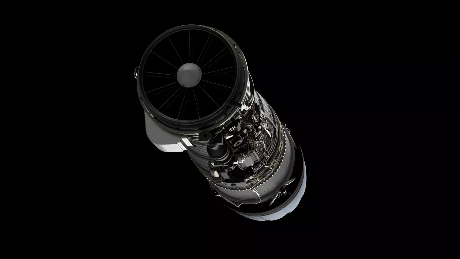 Simplified jet engine model made according to drawings and documentation. The model can be 3d-printed and used as a visual aid.