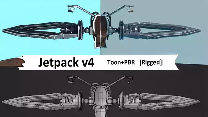 Jetpack v4Rigged.UV Unwrapped and textured. Comes with textures at 1k, 2k & 4k resolution. Contains PBR & Toon (LBS) Shader variations.
