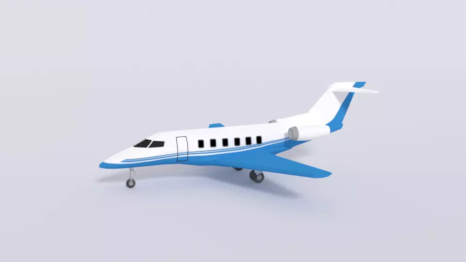 This is a low poly 3d model of a Pilatus PC-24 Aiplane Jet. The low poly airplane was modeled and prepared for low-poly style renderings, background, general CG visualization.
