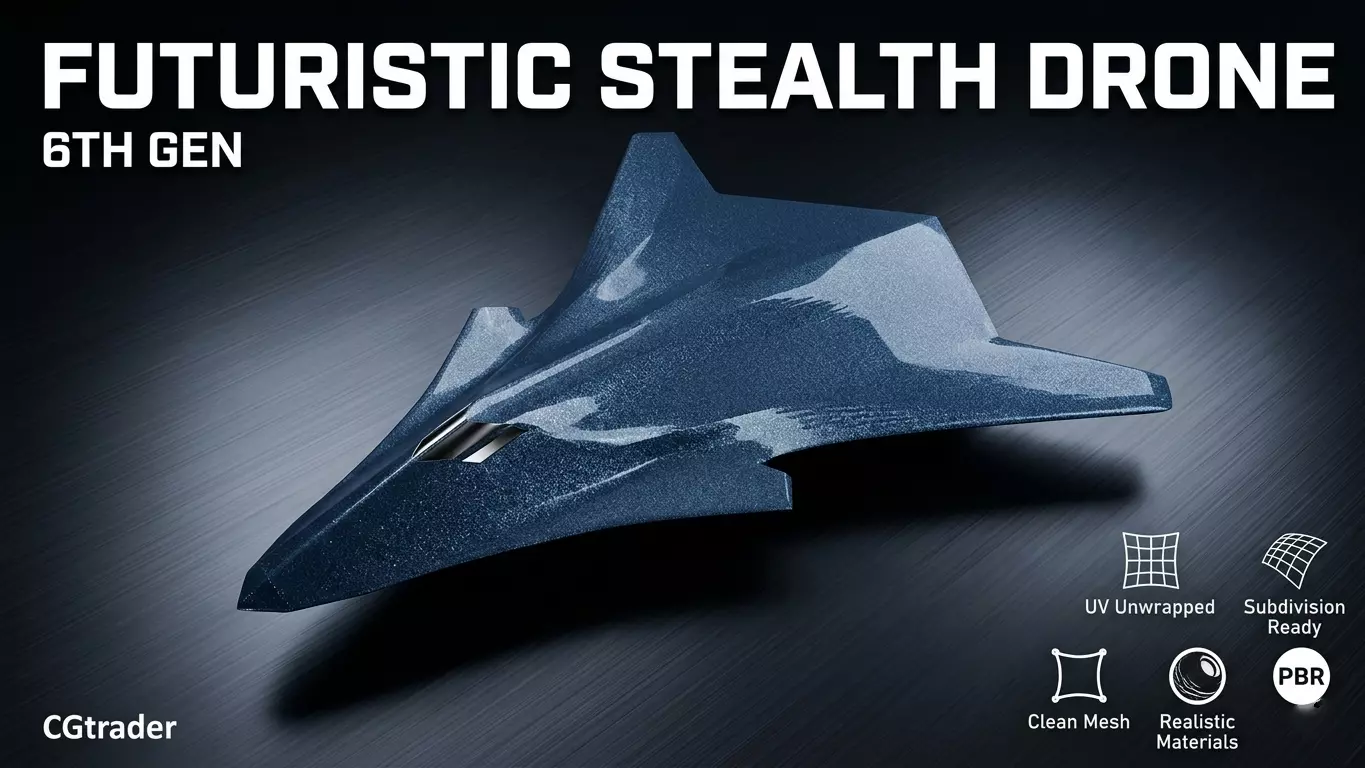 Materials & RealismSurface Finish: The model features realistic PBR (Physically Based Rendering) materials with a matte, radar-absorbent coating (RAM) texture.