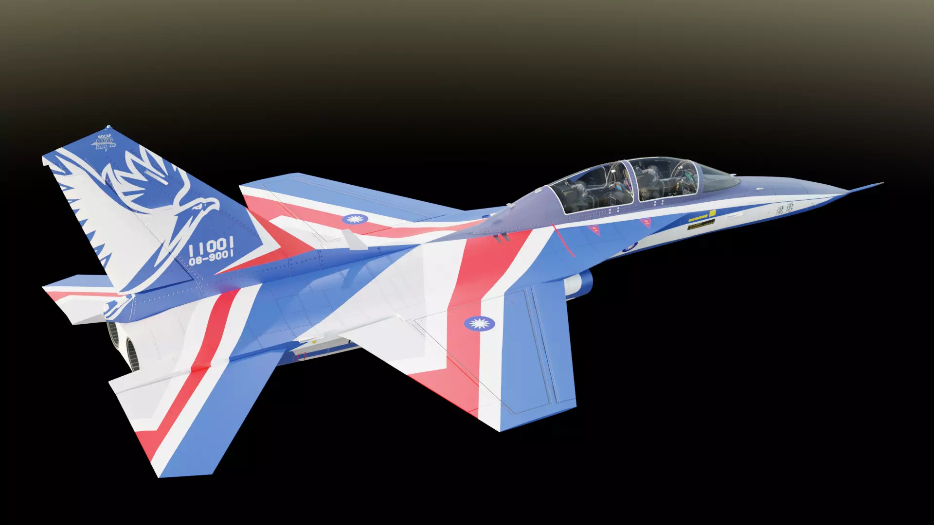 Being encouraged by the grand report of First Flight Show event on TV, I start try to make a 3D model on Blender.T-5 is developed on the basis of F-CK-1 fighter, the appearance of both is similar, so some details refer to F-CK-1.The biggest challenge on making this model is the combination of main body and two engines.