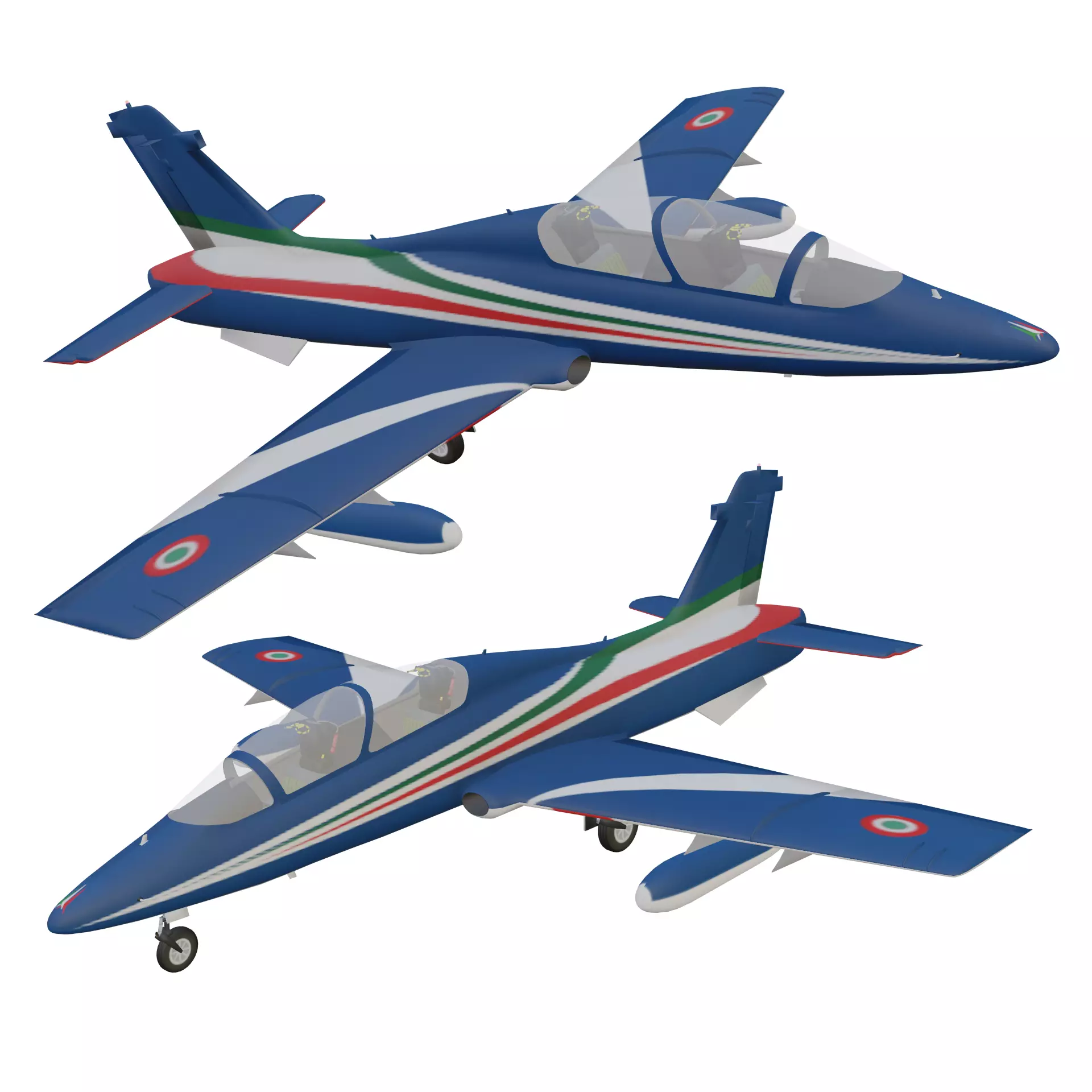 The Aermacchi MB-339 is a high quality, photo real model that will enhance detail and realism to any of your rendering projects. With detailed cockpit. The model has a fully textured, detailed design that allows for close-up renders. Renders have no postprocessing.