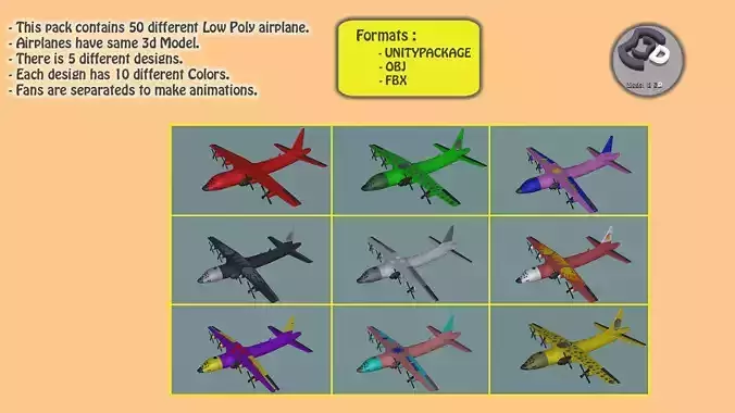 Airplane plane with propellers flying in sky Low-poly 3D model