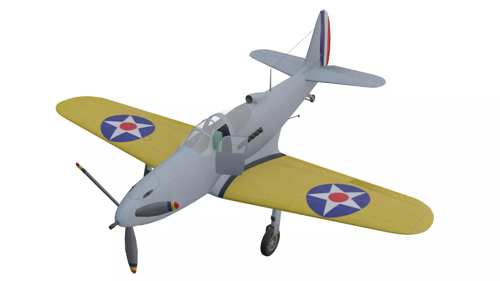 The Bell XFL-1 Airabonita is a high quality, photo real model that will enhance detail and realism to any of your rendering projects. This model captures the unique naval experimental interceptor based on the P-39 design, featuring its distinctive tail-dragger landing gear and carrier-specific modifications.The model has a fully textured, detailed design that allows for close-up renders. Renders have no postprocessing.
