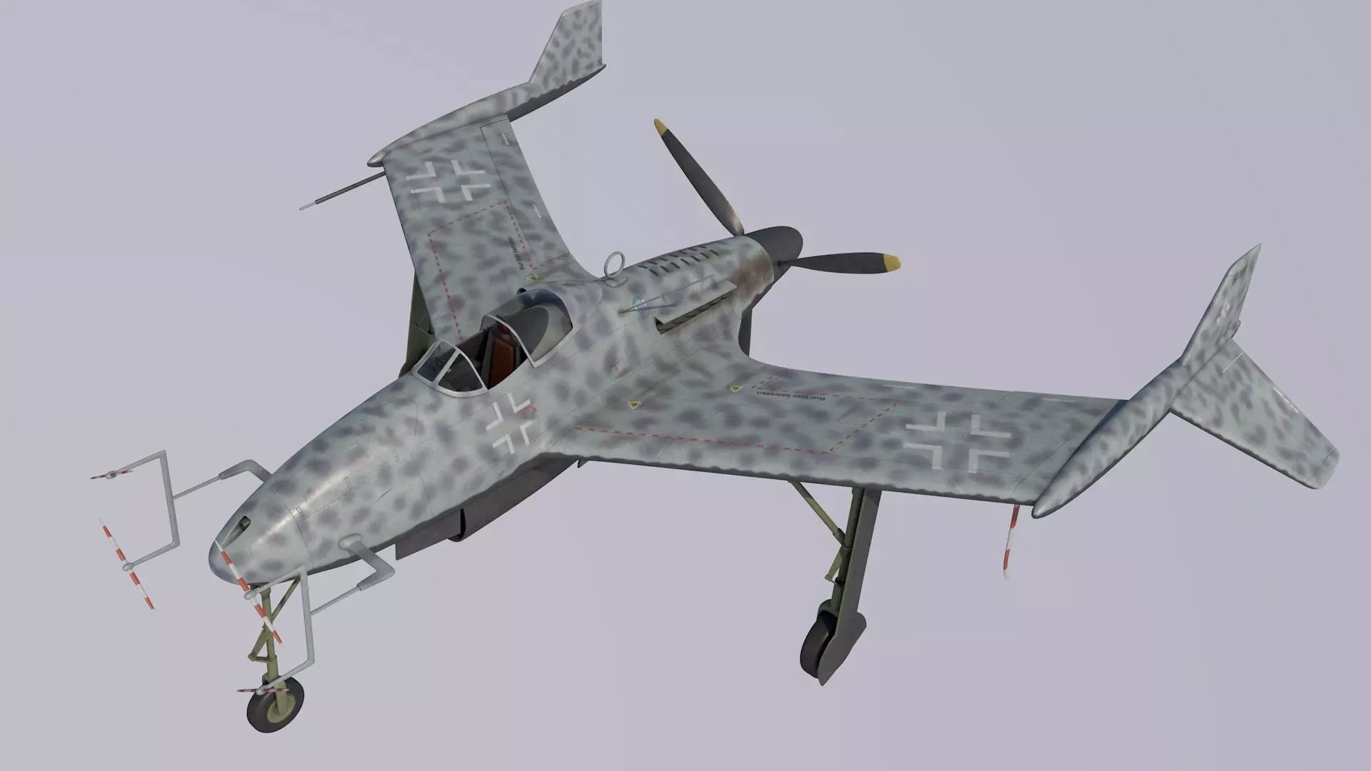 The Blohm & Voss P.208 was a design project for a tailless swept-wing propeller-powered interceptor designed by the German company Blohm & Voss towards the end of the Second World War. It was the first of several such arrow-wing designs, the later ones all being jet powered. This is how the night fighter version could have looked like.