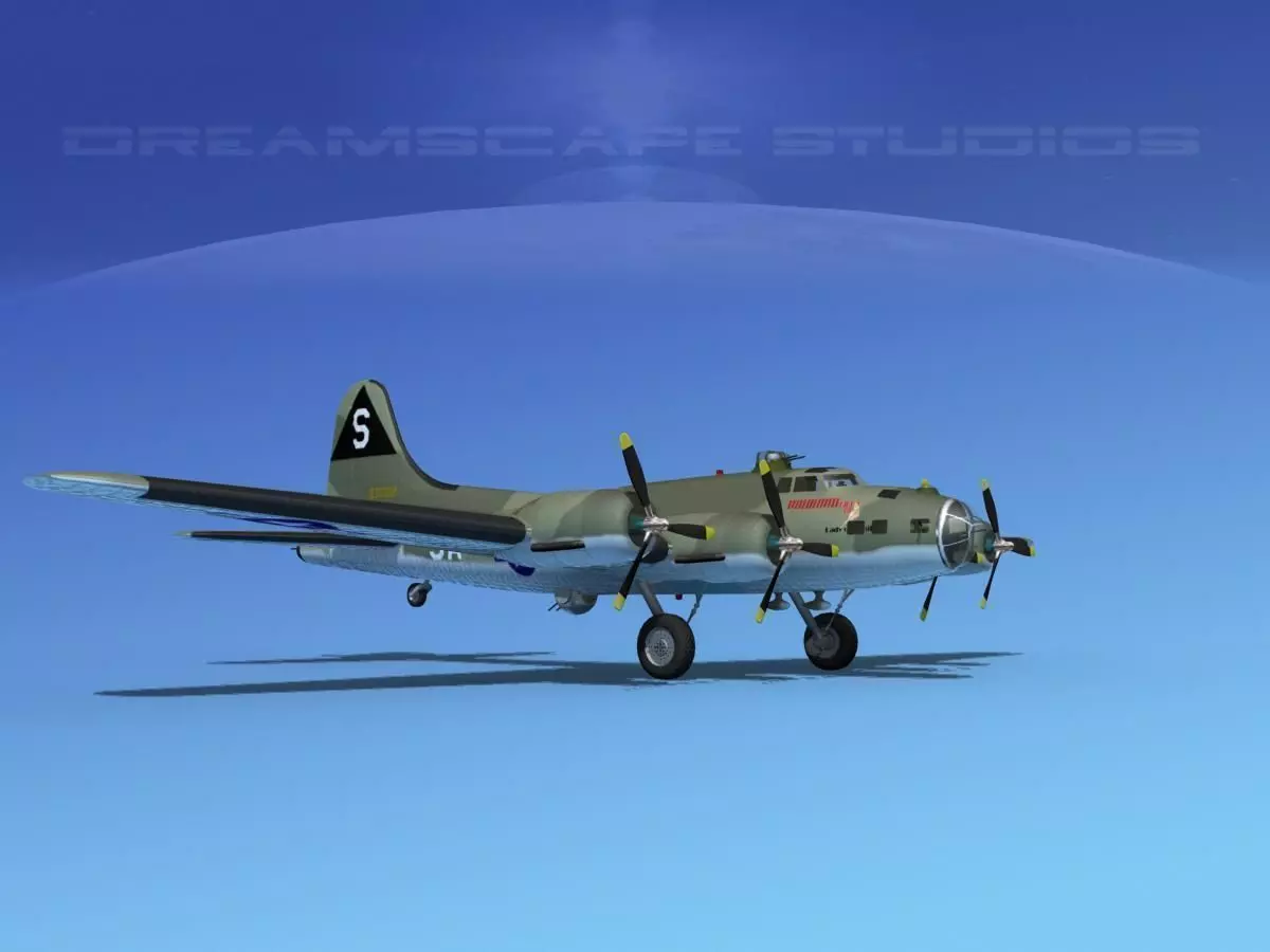 B-17 is built very near to scale and is fully textured. It has animateable flaps, ailerons, landing gear, landing gear doors, elevators, rudder, bomb bay doors and turret guns. Propellers are animated. HP version has a fairly detailed cockpit, radio room, bomb bay, navigator station and waist gunners station. It also has bombs. Both model versions have detailed landing gear. HP version also has detailed engines. Models are available in many formats.