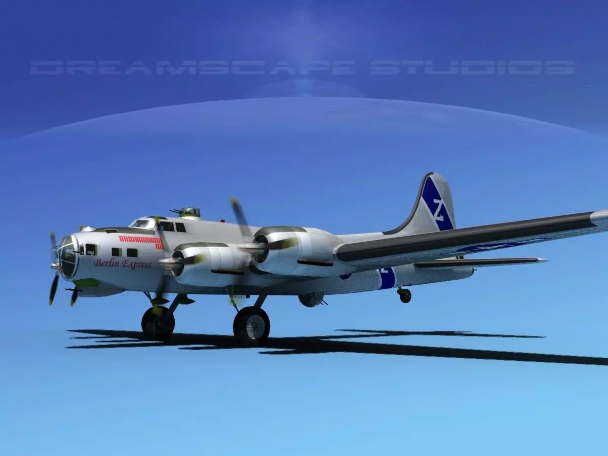 B-17 is built very near to scale and is fully textured. It has animateable flaps, ailerons, landing gear, landing gear doors, elevators, rudder, bomb bay doors and turret guns. Propellers are animated. HP version has a fairly detailed cockpit, radio room, bomb bay, navigator station and waist gunners station. It also has bombs. Both model versions have detailed landing gear. HP version also has detailed engines. Models are available in many formats.