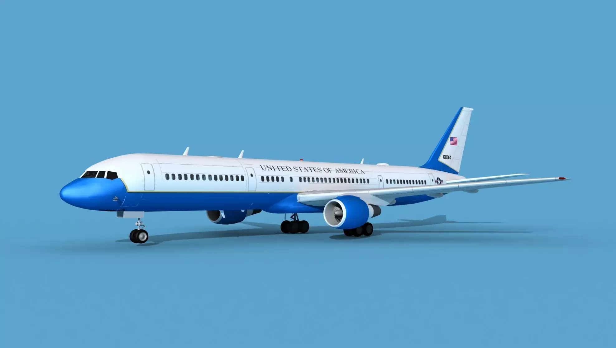 The Boeing C-32 is a US Air Force version of the Boeing 757-200 and designated the C-32A which is a VIP Executive and political transport or C-32B a special operations clandestine services transport. The C-32A normally transports the Vice President of the US or Congressional delegations in travels around the globe. The C-32A generally operates as Air Force 2.The model was built near to scale in real units and built based on drawings, photos, and other documents. This model has a moderately detailed cockpit and the following animateable features; ailerons, elevators, rudder, flaps, landing gear retraction, landing gear doors, turbines and wheels. These models render very well and look very realistic using good animation, lighting and rendering technique. It can be used in an animated or static position within a scene, animation or animated video, or possibly programming for a flight simulation application. This model was not designed for 3d printing, these are to be used as digital files only. If you purchase one for digital printing we do not guarantee that your print will be successful.Exporting of models is limited but good for several software applications. This model is fully textured with all materials UVW mapped and applied. Most materials are planar mapped and major materials include texturing. All textures and materials are included as shown. Objects are logically named for ease of scene management.No cleaning up necessary, just drop your models into the scene and start rendering.No special plug-ins are needed to open scene.In most cases the liveries are based on actual service liveries or paint schemes. Many of the units, airlines or countries who flew the plane are represented here. Dreamscape Studios is a US 3d modeling firm specializing in building high definition, accurate, and detailed 3D models of commercial, civilian, and military airplanes, ships, buildings and other subjects.Dreamscape 3d models are built in ultra-low to ultra-high polygon count, (most often) near to scale and include a good amount of detail based on the resolution target. If you have a question, error or problem with the model, let us know and we will do our best to provide or get a solution for you. Be advised our models are not designed for 3d printing unless they are advertised for that purpose.