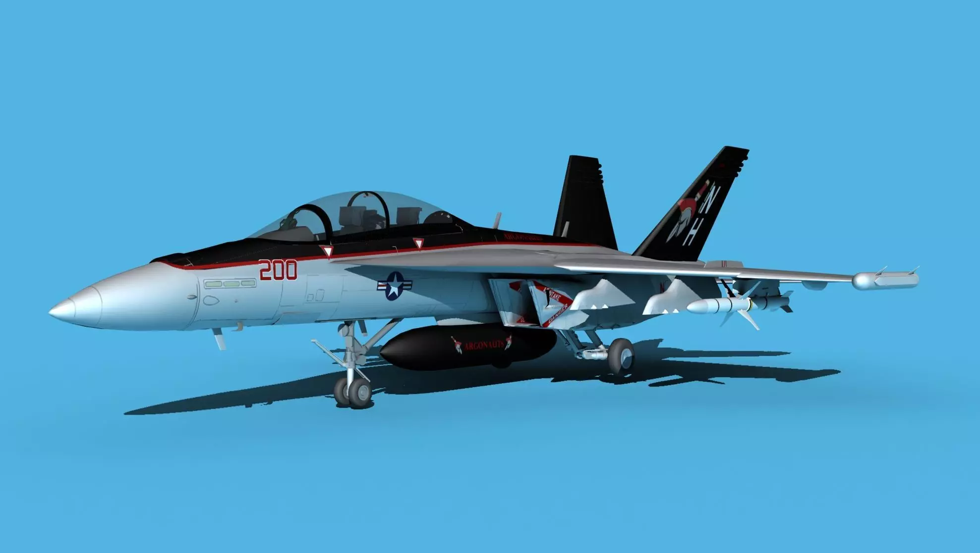 This model was built near to scale and includes the textures and livery you see here. Model is fully textured with all materials UVW mapped and applied. Most materials are planar mapped and major materials include texturing. These models render very well and look very realistic using good animation and rendering technique. It can be used in an animated or static position within an animated video or possibly for programming for a flight simulation application. This model was not designed for 3d printing, these are digital files only. The models come in several formats. Exported formats are prepared well to work correctly when used in the application aligned with the format of the exportMany animateable features are included like landing gear, landing gear doors flaps, flaperons, rudders, canopy, missiles and propellers on the electronics packages. Missiles can be launched, and external fuel tanks can also be dropped. Lots of details are in the cockpit. This model also comes with AGM-88 x2, 2 x 480 gal external fuel tanks. These models also include paint schemes very much similar to actual air combat units of the US Navy.