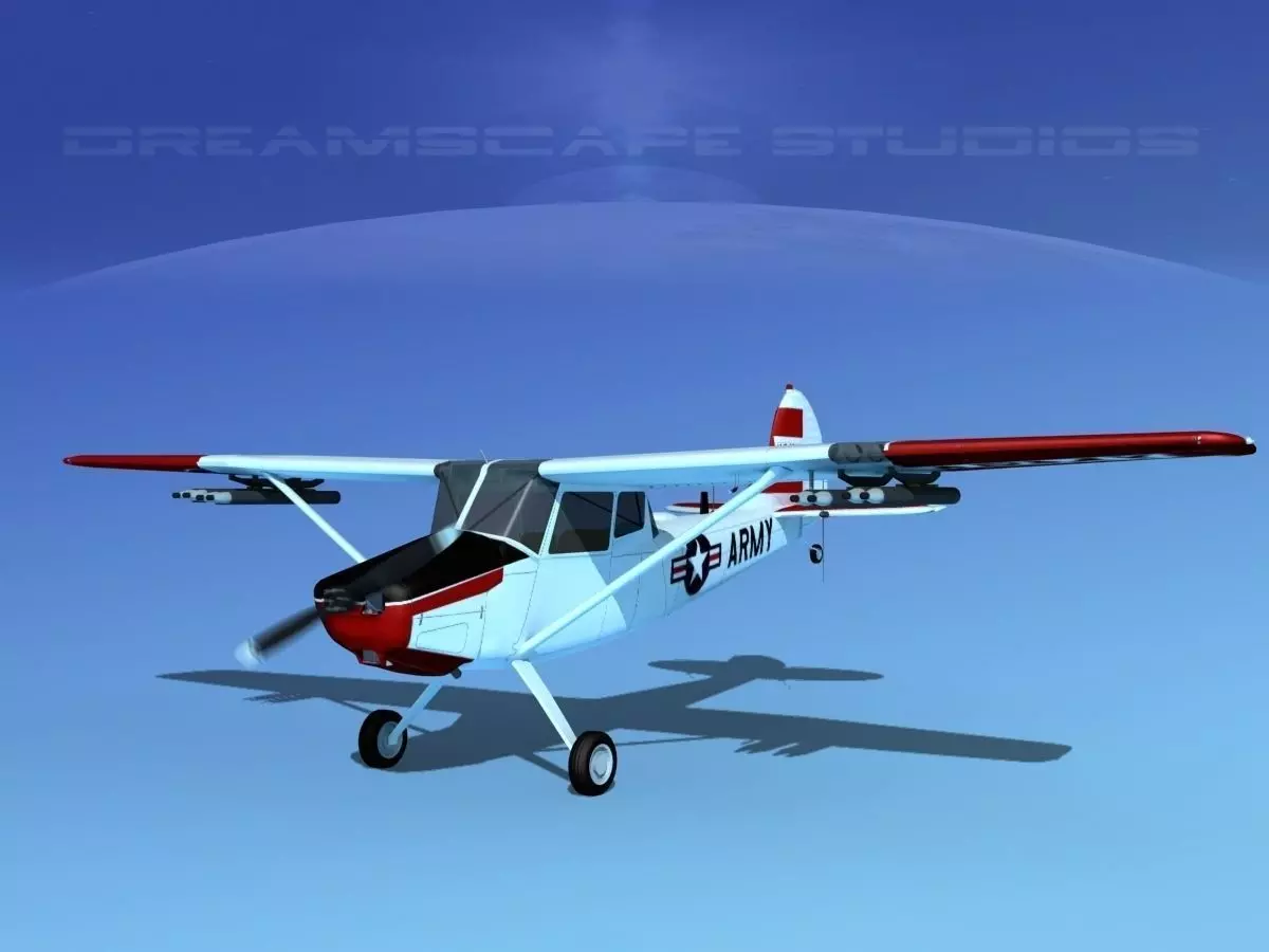Cessna O-1E L-19 US Army 4 This model was originally built in Max 13 near to scale, within 3% of general dimensions. It has a good amount of exterior detail and a moderate amount of cabin detail. The model has animated propeller and animated control surfaces including ailerons, flaps, elevators, rudder. The wheels may also be animated. This model also has animateable landing gear retraction, flaps, landing gear doors, ailerons, elevators and rudder. It is available in several formats for a wide variety of end users. This model comes with many different liveries. It is built to be used in in-flight or airport ground animations and video or simulation. It can also be used to populate an airport scene.