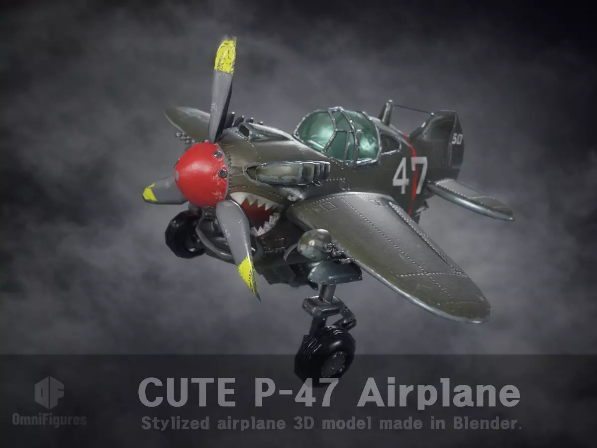 Cute P-47 Airplane Blender 3D Model Low-poly 3D model