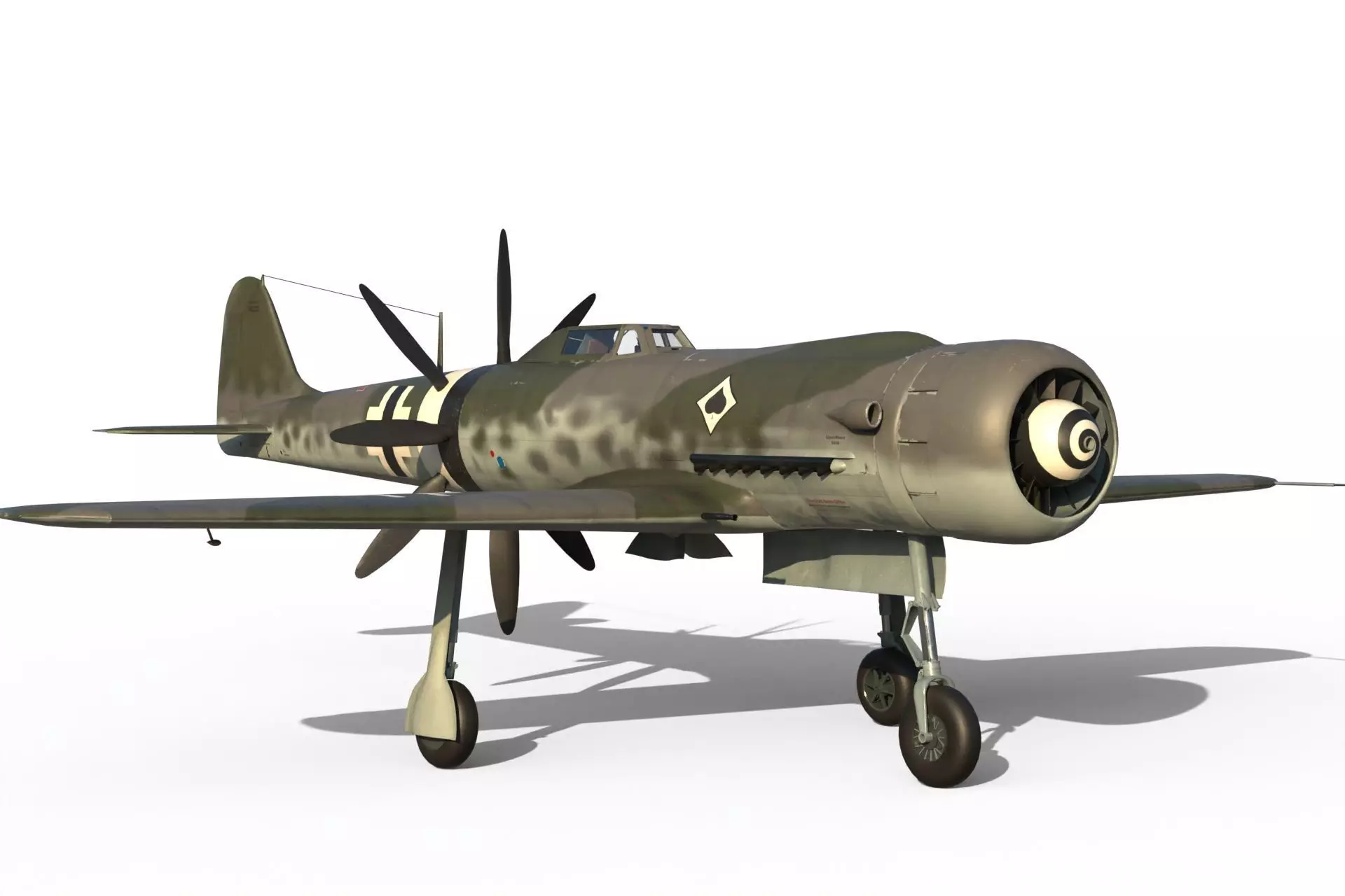 This powerful engine would be mounted in the front of the aircraft, which would allow room for a four-stage supercharger and a large calibre autocannon. Unlike any other design, the Jäger would have two contra-rotating props located in the centre of the fuselage, which - combined with it's powerful engine - would likely have given the aircraft an astonishing maximum speed.