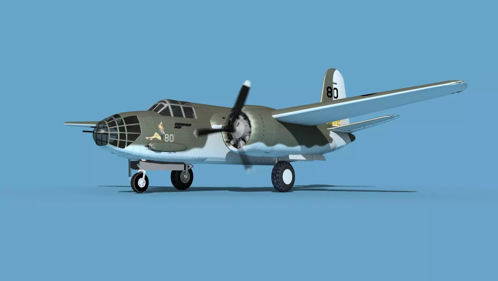 This model was built near to scale in real units and based on real dimensional information, drawings, photos, and other documents. Model is fully textured with all materials UVW mapped and applied. Most materials are planar mapped and major materials include texturing. All textures and materials are included as shown. Liveries are based on actual service liveries. Many of the countries who flew the plane are represented here. Major objects are logically named for ease of scene management. In most cases no cleaning up necessary, just drop your models into the scene and start rendering. No special plugin needed to open scene.This model has animated propellers, animateable Bombay, ailerons, elevators, inboard flaps, outboard flaps, rudder, landing gear, landing gear doors and pilots hatch. Radial engines are geometrically semi detailed. Cockpit is also moderately detailed. These models render very well and look realistic using good animation and rendering technique. It can be used in an animated or static position within an animated video or possibly for programming for some flight simulation applications. This model was not designed for 3d printing, these are digital files only. The model comes in several formats.
