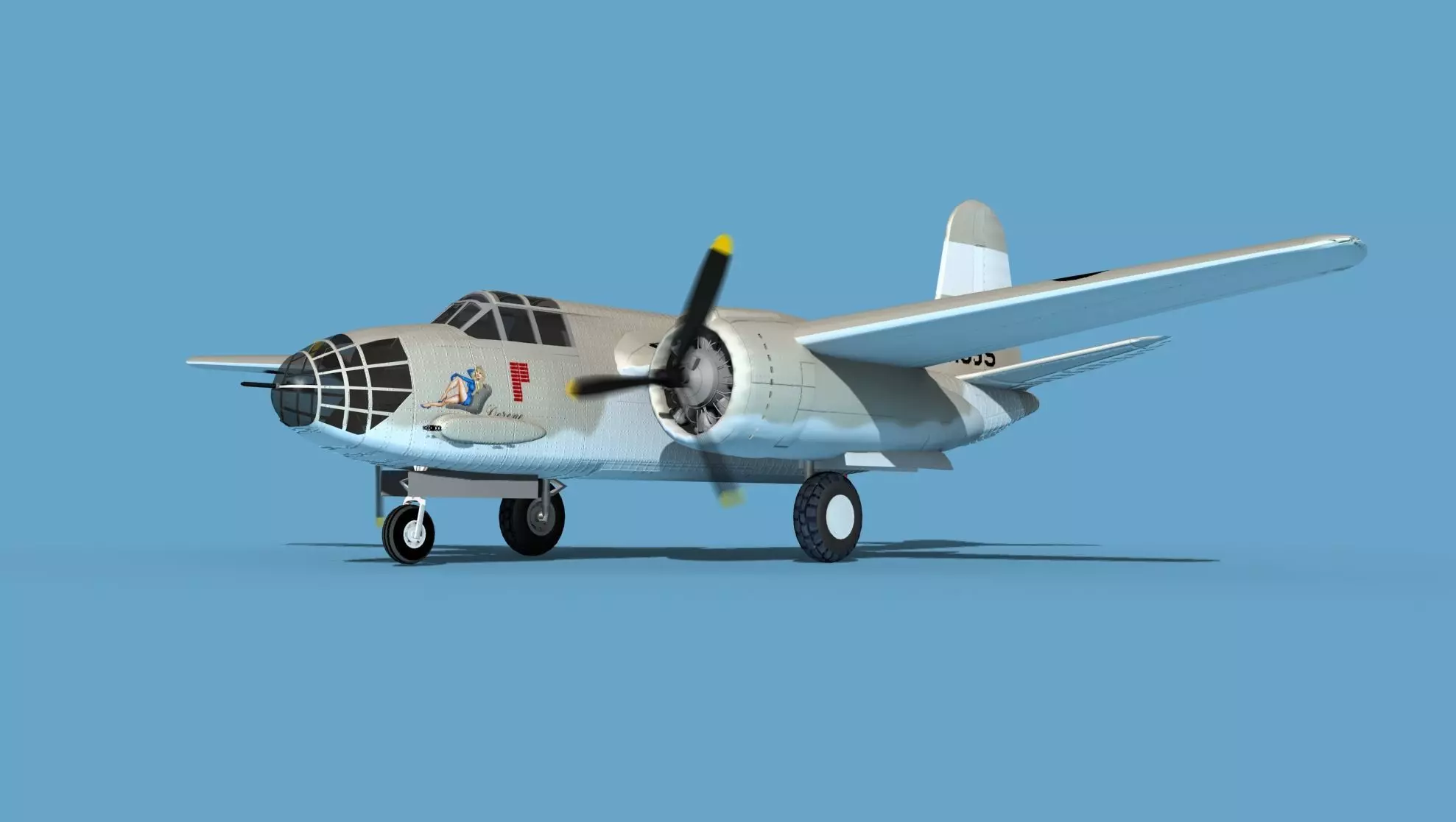 This model was built near to scale in real units and based on real dimensional information, drawings, photos, and other documents. Model is fully textured with all materials UVW mapped and applied. Most materials are planar mapped and major materials include texturing. All textures and materials are included as shown. Liveries are based on actual service liveries. Many of the countries who flew the plane are represented here. Major objects are logically named for ease of scene management. In most cases no cleaning up necessary, just drop your models into the scene and start rendering. No special plugin needed to open scene.This model has animated propellers, animateable Bombay, ailerons, elevators, inboard flaps, outboard flaps, rudder, landing gear, landing gear doors and pilots hatch. Radial engines are geometrically semi detailed. Cockpit is also moderately detailed. These models render very well and look realistic using good animation and rendering technique. It can be used in an animated or static position within an animated video or possibly for programming for some flight simulation applications. This model was not designed for 3d printing, these are digital files only. The model comes in several formats.