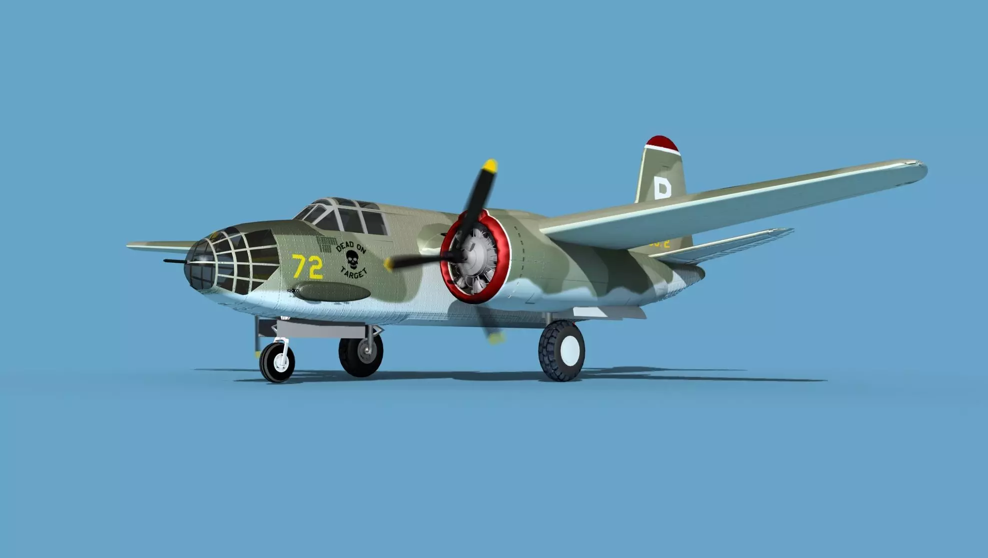 This model was built near to scale in real units and based on real dimensional information, drawings, photos, and other documents. Model is fully textured with all materials UVW mapped and applied. Most materials are planar mapped and major materials include texturing. All textures and materials are included as shown. Liveries are based on actual service liveries. Many of the countries who flew the plane are represented here. Major objects are logically named for ease of scene management. In most cases no cleaning up necessary, just drop your models into the scene and start rendering. No special plugin needed to open scene.This model has animated propellers, animateable Bombay, ailerons, elevators, inboard flaps, outboard flaps, rudder, landing gear, landing gear doors and pilots hatch. Radial engines are geometrically semi detailed. Cockpit is also moderately detailed. These models render very well and look realistic using good animation and rendering technique. It can be used in an animated or static position within an animated video or possibly for programming for some flight simulation applications. This model was not designed for 3d printing, these are digital files only. The model comes in several formats.