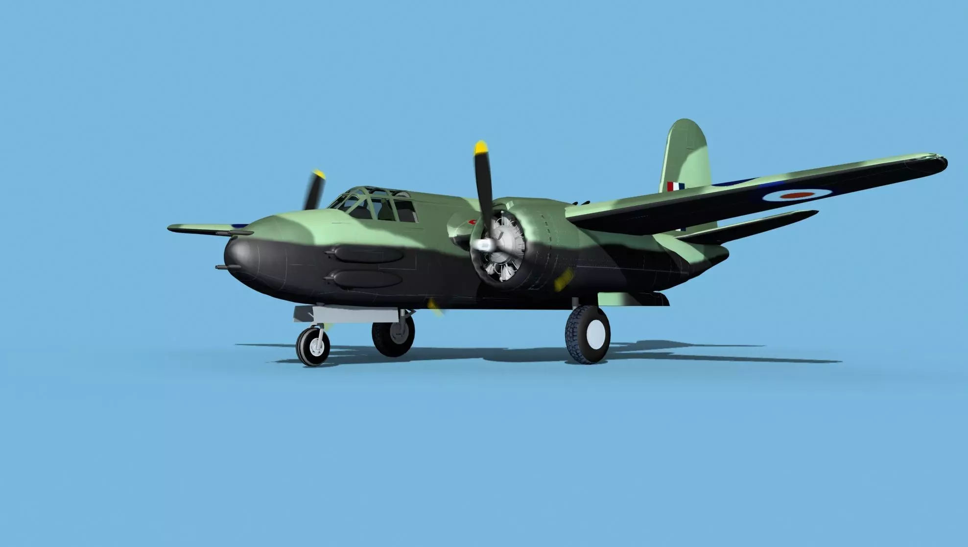 This model was built near to scale in real units and based on real dimensional information, drawings, photos, and other documents. Model is fully textured with all materials UVW mapped and applied. Most materials are planar mapped and major materials include texturing. All textures and materials are included as shown. Liveries are based on actual service liveries. Many of the countries who flew the plane are represented here. Major objects are logically named for ease of scene management. In most cases no cleaning up necessary, just drop your models into the scene and start rendering. No special plugin needed to open scene.This model has animated propellers, animateable Bombay, ailerons, elevators, inboard flaps, outboard flaps, rudder, landing gear, landing gear doors and pilots hatch. Radial engines are geometrically semi detailed. Cockpit is also moderately detailed. These models render very well and look realistic using good animation and rendering technique. It can be used in an animated or static position within an animated video or possibly for programming for some flight simulation applications. This model was not designed for 3d printing, these are digital files only. The model comes in several formats.