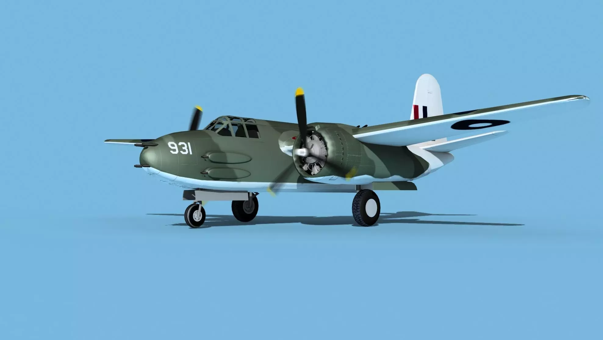 This model was built near to scale in real units and based on real dimensional information, drawings, photos, and other documents. Model is fully textured with all materials UVW mapped and applied. Most materials are planar mapped and major materials include texturing. All textures and materials are included as shown. Liveries are based on actual service liveries. Many of the countries who flew the plane are represented here. Major objects are logically named for ease of scene management. In most cases no cleaning up necessary, just drop your models into the scene and start rendering. No special plugin needed to open scene.This model has animated propellers, animateable Bombay, ailerons, elevators, inboard flaps, outboard flaps, rudder, landing gear, landing gear doors and pilots hatch. Radial engines are geometrically semi detailed. Cockpit is also moderately detailed. These models render very well and look realistic using good animation and rendering technique. It can be used in an animated or static position within an animated video or possibly for programming for some flight simulation applications. This model was not designed for 3d printing, these are digital files only. The model comes in several formats.