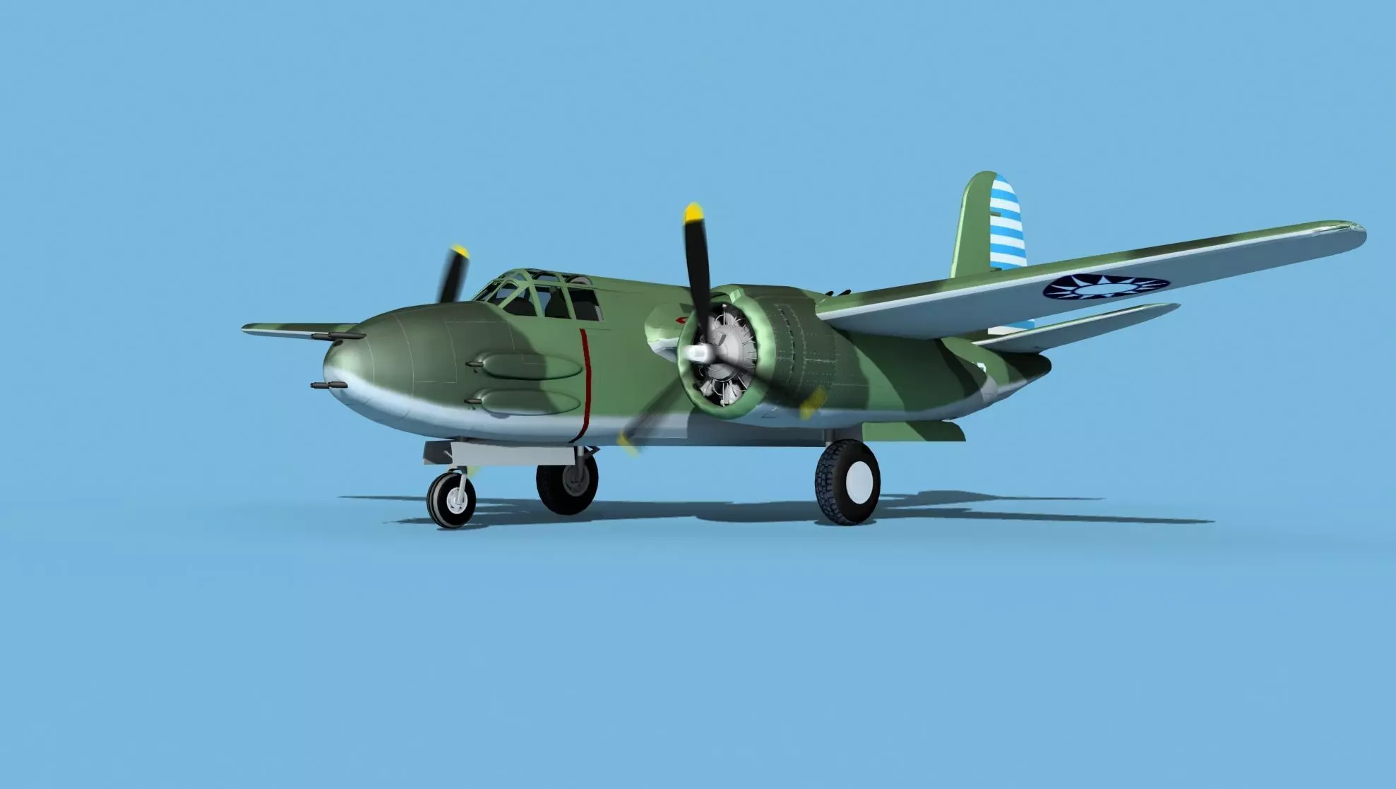 This model was built near to scale in real units and based on real dimensional information, drawings, photos, and other documents. Model is fully textured with all materials UVW mapped and applied. Most materials are planar mapped and major materials include texturing. All textures and materials are included as shown. Liveries are based on actual service liveries. Many of the countries who flew the plane are represented here. Major objects are logically named for ease of scene management. In most cases no cleaning up necessary, just drop your models into the scene and start rendering. No special plugin needed to open scene.This model has animated propellers, animateable Bombay, ailerons, elevators, inboard flaps, outboard flaps, rudder, landing gear, landing gear doors and pilots hatch. Radial engines are geometrically semi detailed. Cockpit is also moderately detailed. These models render very well and look realistic using good animation and rendering technique. It can be used in an animated or static position within an animated video or possibly for programming for some flight simulation applications. This model was not designed for 3d printing, these are digital files only. The model comes in several formats.