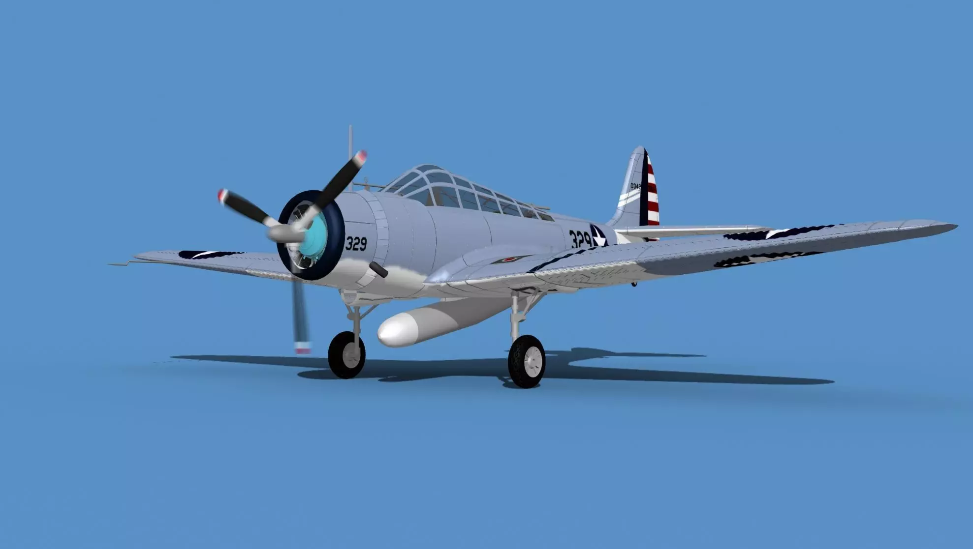 The TBD was ordered by the US Navy in 1934 and first flew in 1935. It began production and started service in 1937 and at the time was the most advanced aircraft in the US Navy and possibly the world. However these years just before WWII had very fast development of aircraft with increased capabilities and characteristics. By the time the Japanese attacked Pearl Harbor Hawaii drawing the US into WWII, the TBD was badly outdated and obsolete. It however was still in-service at the time of the Battle of Coral Sea and Midway. At Coral Sea it was moderately effective, but at Midway it was a complete disaster and only one pilot survived the battle in all of the torpedo quadroons. It was soon replaced with the Grumman TBF, a much better torpedo bomber aircraft.The model was built near to scale in real units and built based on drawings, photos, and other documents. This model has a moderately detailed cockpit and the following animateable features; sliding canopy, ailerons, elevators, rudder, and wheels. These models render very well and look very realistic using good animation, lighting and rendering technique. It can be used in an animated or static position within a scene, animation or animated video, or possibly programming for a flight simulation application. This model was not designed for 3d printing, these are to be used as digital files only. If you purchase one for digital printing we do not guarantee that your print will be successful.Exporting of models is limited but good for several software applications. This model is fully textured with all materials UVW mapped and applied. Most materials are planar mapped and major materials include texturing. All textures and materials are included as shown. Objects are logically named for ease of scene management.No cleaning up necessary, just drop your models into the scene and start rendering.No special plug-ins are needed to open scene.In most cases the liveries are based on actual service liveries or paint schemes. Many of the units, airlines or countries who flew the plane are represented here. Dreamscape Studios is a US 3d modeling firm specializing in building high definition, accurate, and detailed 3D models of commercial, civilian, and military airplanes, ships, buildings and other subjects.Dreamscape 3d models are built in ultra-low to ultra-high polygon count, (most often) near to scale and include a good amount of detail based on the resolution target. If you have a question, error or problem with the model, let us know and we will do our best to provide or get a solution for you. Be advised our models are not designed for 3d printing unless they are advertised for that purpose.