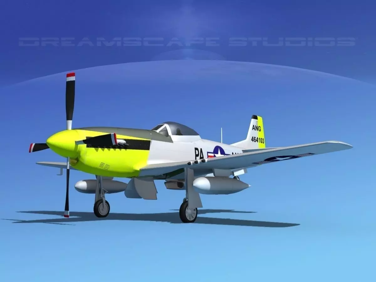 This Mustang model was originally developed for the Discovery Channel. It is built very near to scale and is fully textured. This model is detailed to include cockpit. The engine, cowlings, mounts, seat and radio equipment are modeled. Controls, instrument panels and many cranks and switches are modeled in the cockpit. Many features are animateable including ailerons, flaps, rudder, elevators, main and tail landing gear and doors, propeller, and the cockpit canopy opens.