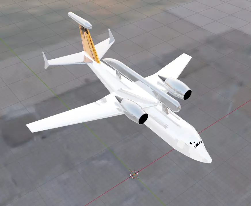 Fictional military aircraft inspired by the upper wing engine configuration of classic aircraft such as the An-71 family using ELINT suite rather than as an AWACS or AEW&C platform.
