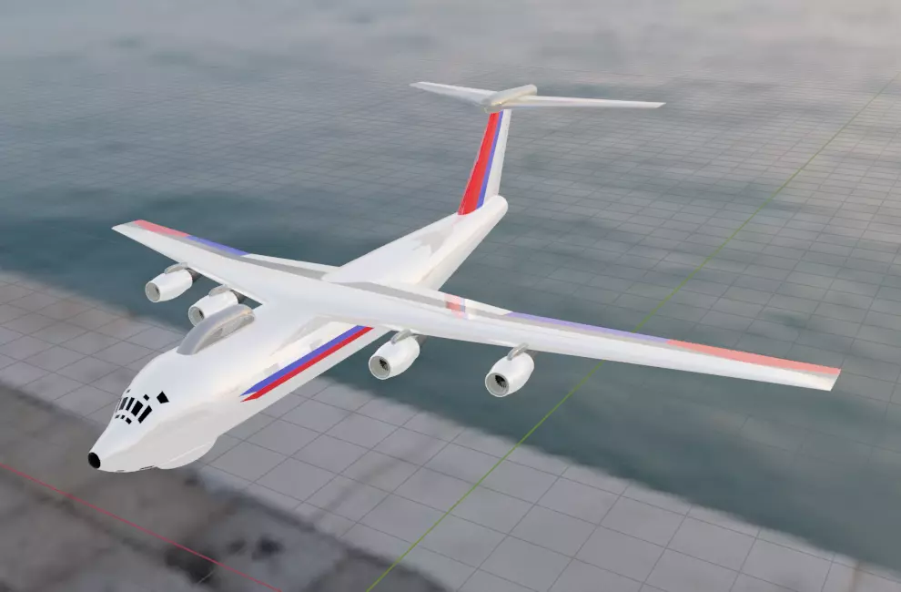 Fictional ELINT aircraft inspired by the upper wing quad engine T-tail configuration of classic aircraft such as the Il-76 family.