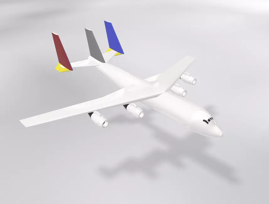 Fictional Heavy Cargo Aircraft inspired by the quad engine three tail tail configuration of classic aircraft such as the An-124 family.