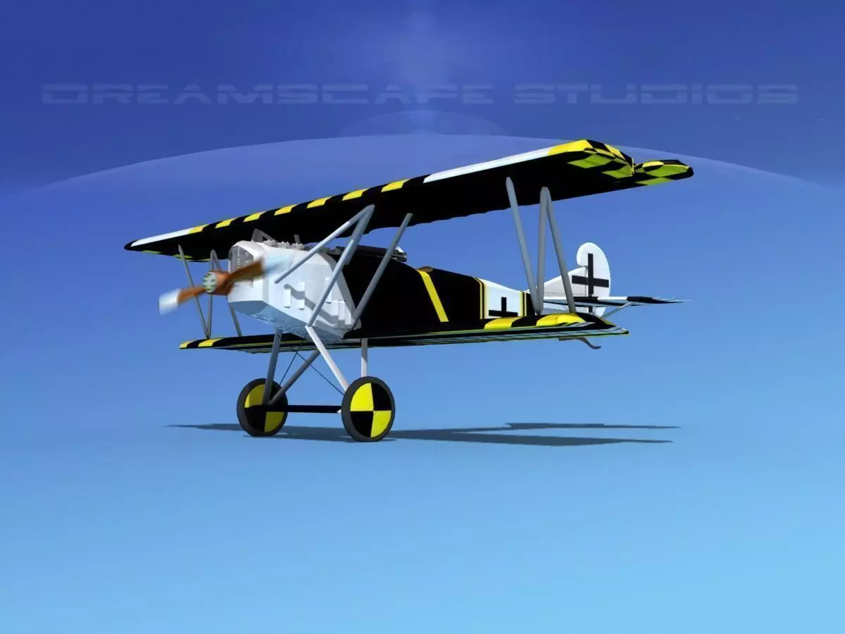 This model has a lot of detail on the outside and in the cockpit. It comes fully textured and built near to scale. It has many animateable features including landing gear (wheels) rudder, ailerons, some controls in the cockpit and the propeller. This model includes the top end detail of the Mercedes engine.