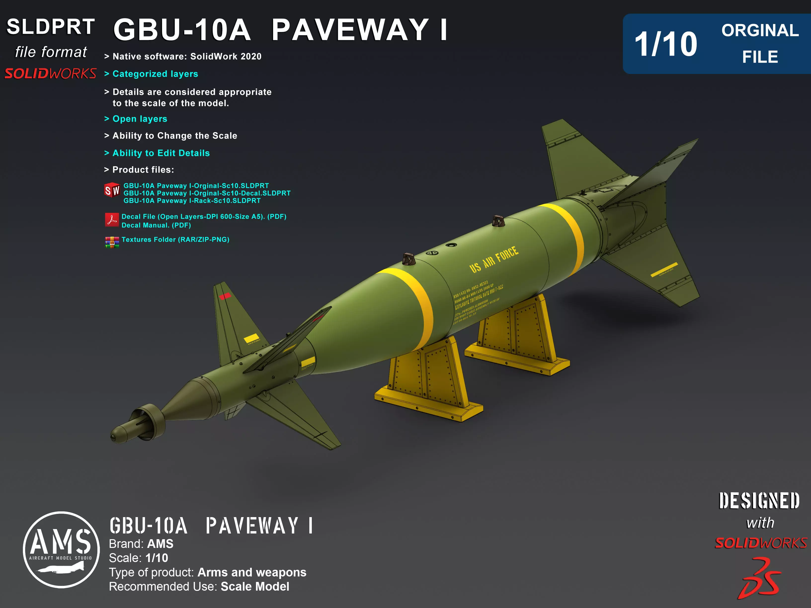 - GBU-10A Paveway I-Orginal-Sc10-Decal.SLDPRT. (Solidwork)