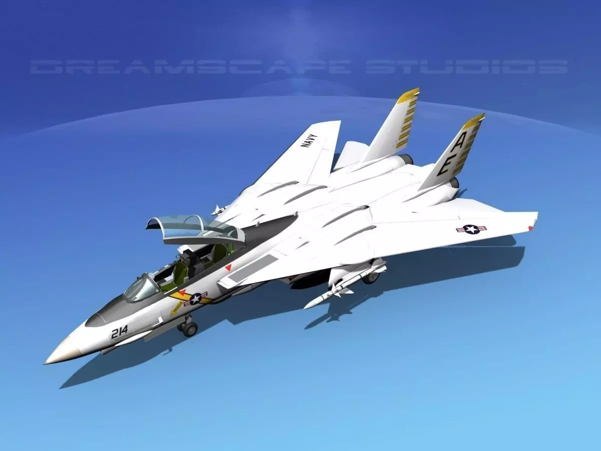 This model was built very near to scale and is fully textured. Model has animateable leading edge wing slats, flaps, stabilizations, rudders, turbines, canopy open/close, landing gear extend, landing gear doors, wheels and some cockpit controls. Details include modeled cockpit, controls, turbines, engine exhaust and much more. The model comes in 10 different formats. Cockpit canopy opening is animated. Models with squadron liveries do come with sidewinder, sparrow and Maverick missiles, pylons and additional textures for these. Models are posted with three liveries including the 1970s bright colorful large marking paint schemes, 1980s less bright and more subdued color paint schemes and also the 1990s drab fully subdued paint schemes. All three liveries will be of a single identified squadron. One model High Poly "HP" is built without landing gear, without all the cockpit detail and some other details. Model HP polygon count is 139909 and vertices count is 75708.The second model Very High Poly "VHP" is complete with landing gear, landing gear doors and a lot of cockpit detail including panels, dials, displays, toggles. Model VHP polygon count is 261051 and vertices count is 139761