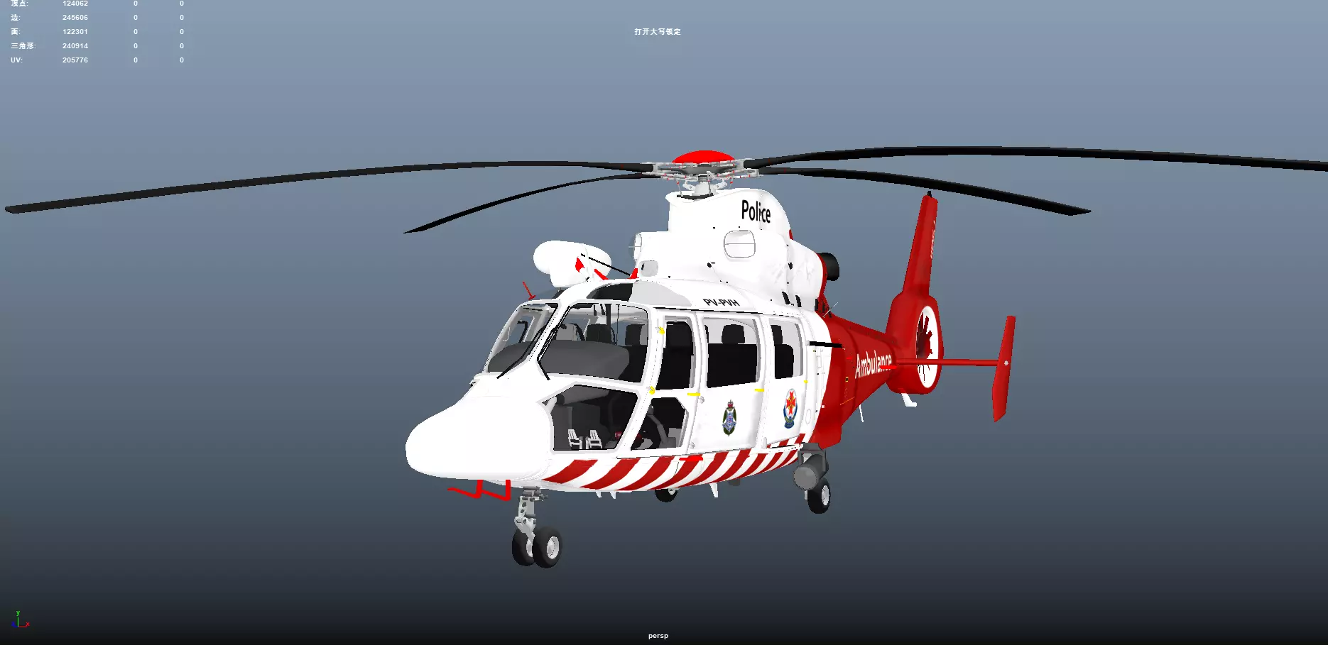 Features:– High-detail exterior with realistic Police & Ambulance livery– Fully modeled cockpit with detailed instrument panels– Clean quad-based topology– Proper UV mapping with non-overlapping UVs– Textures and materials included– Suitable for close-up and cinematic rendering