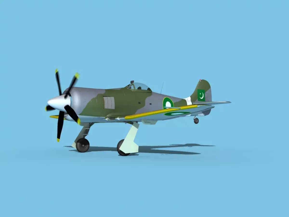 This model is built very near to actual scale. It has an animated propeller and animateable features including landing gear, landing gear doors, rudder, elevators, ailerons, inboard and outboard flaps. It is fully textured and includes a lot of exterior and cockpit control and instrument panel detail. Model is available in a few formats - Max 2014, 3DS, Obj, dwg, dxf . It can be used in an animated or static position within an animated video or possibly for programming for a flight simulation application. This model was not designed for 3d printing, these are digital files only.The Hawker Tempest Mk 11 is a British designed and built fighter airplane manufactured by the Hawker Aircraft Company at the end of World War II. It was the last piston-engine aircraft used by the Royal Air Force before the jet age made them obsolete. They continued in service as a ground attack aircraft through the UN Operations in the Korean Conflict. They have been used in unlimited class racing after the Korean War. They are also a prized possession for a very wealthy collectors, museum or a racing enthusiasts.