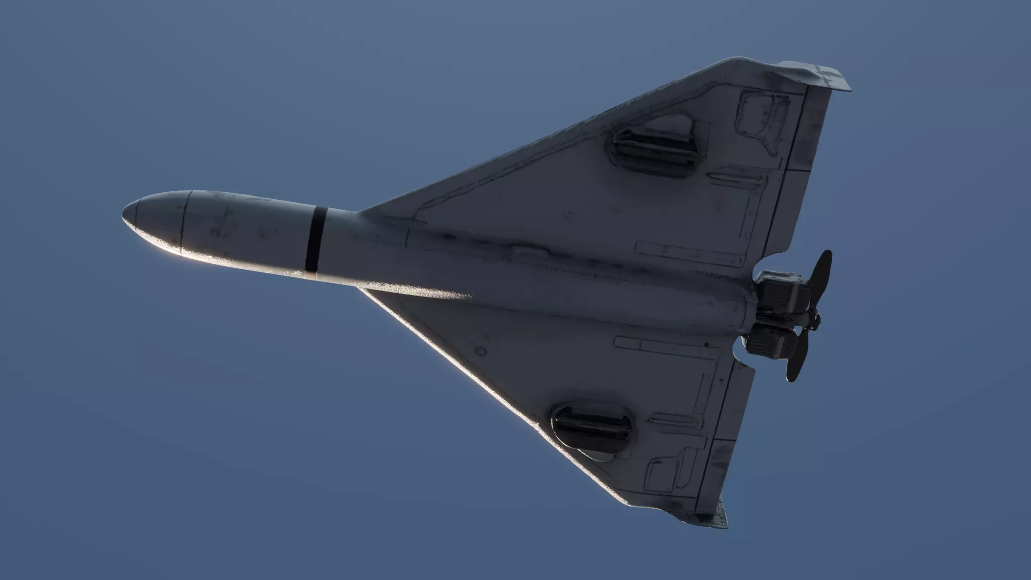 Tactical Kamikaze Drone model. 40K faces, baked from a high-poly 3M faces sculpt. Designed for modern combat simulations and cinematic war environments.