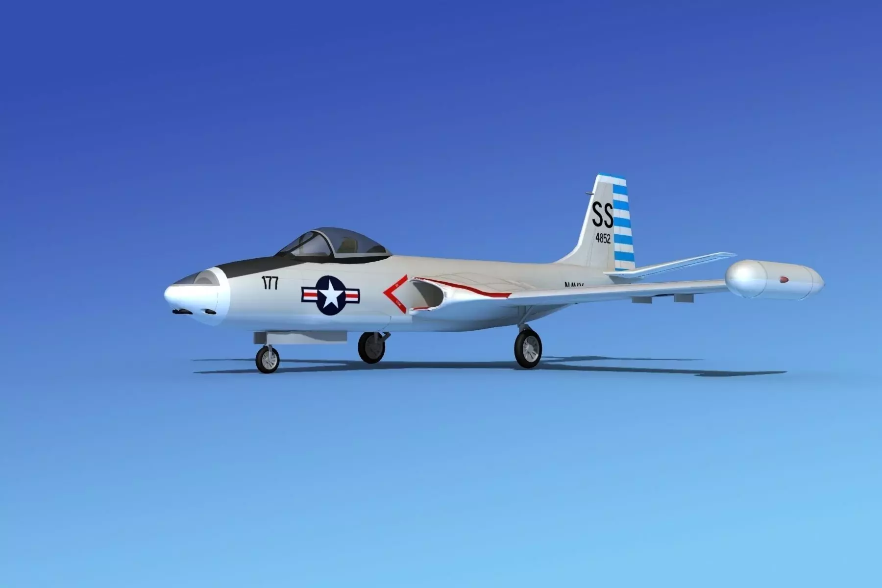 This model is built very near to scale, within a few inches of actual general dimensions. It has a very detailed cockpit, and exterior. It has animateable landing gear, landing gear doors and control surfaces. The canopy can be opened. It is available in multiple formats. This is a great model for your Korean era projects. Textures and materials are included.