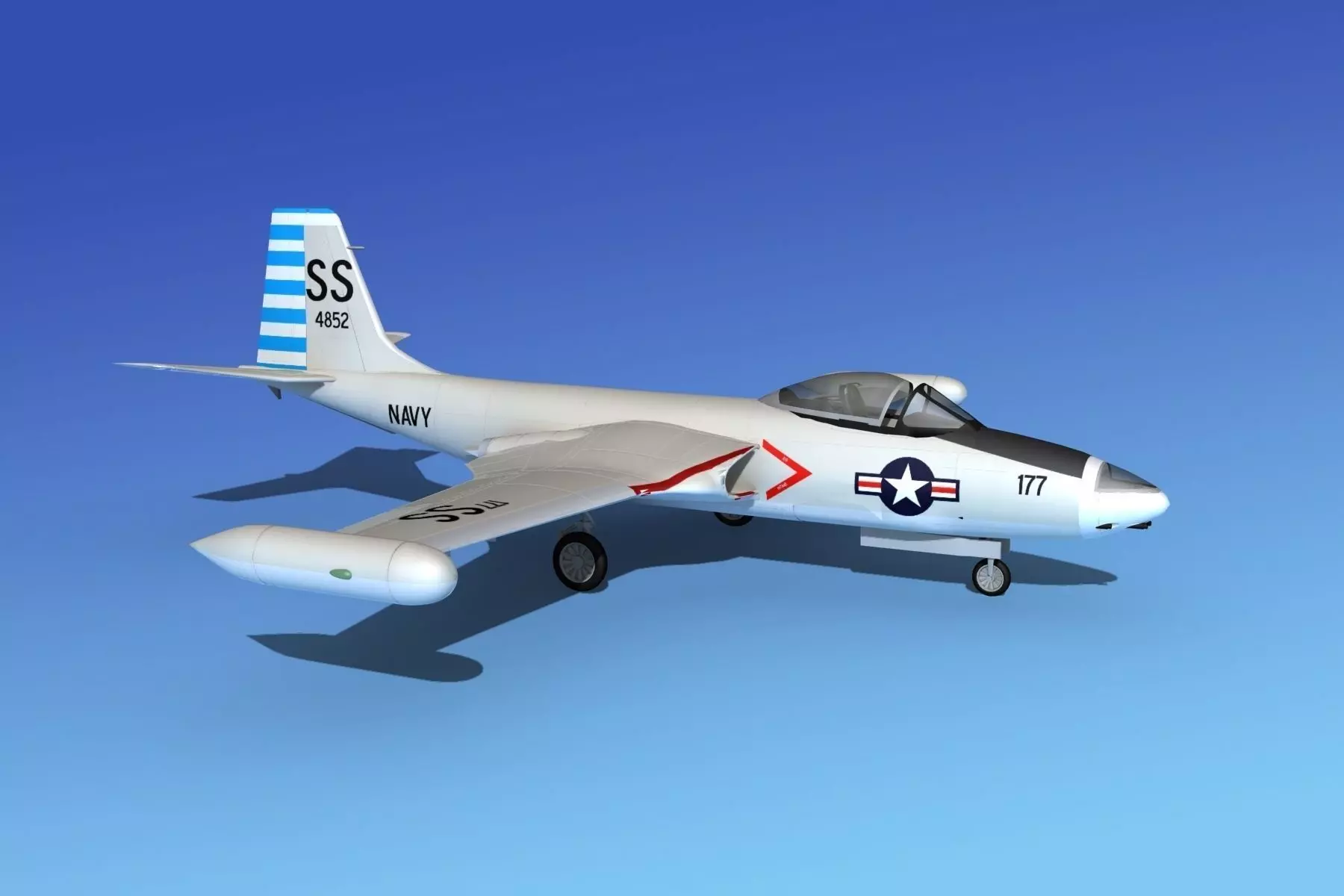 This model is built very near to scale, within a few inches of actual general dimensions. It has a very detailed cockpit, and exterior. It has animateable landing gear, landing gear doors and control surfaces. The canopy can be opened. It is available in multiple formats. This is a great model for your Korean era projects. Textures and materials are included.