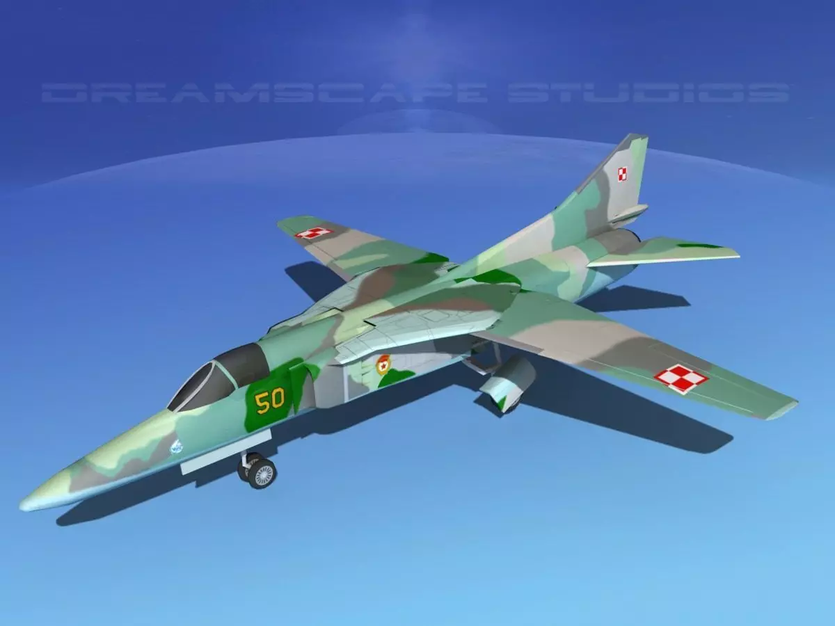 This low poly MIG-27 3d model was built near to scale in general dimensional terms. It includes landing gear and wings are in the most forward sweep position. This model has animateable flaps, slats, stabilizers and rudder. Landing gear can be rotated hidden and landing gear bay doors closed. This model comes with the materials and textures and is available in a wide range of formats.