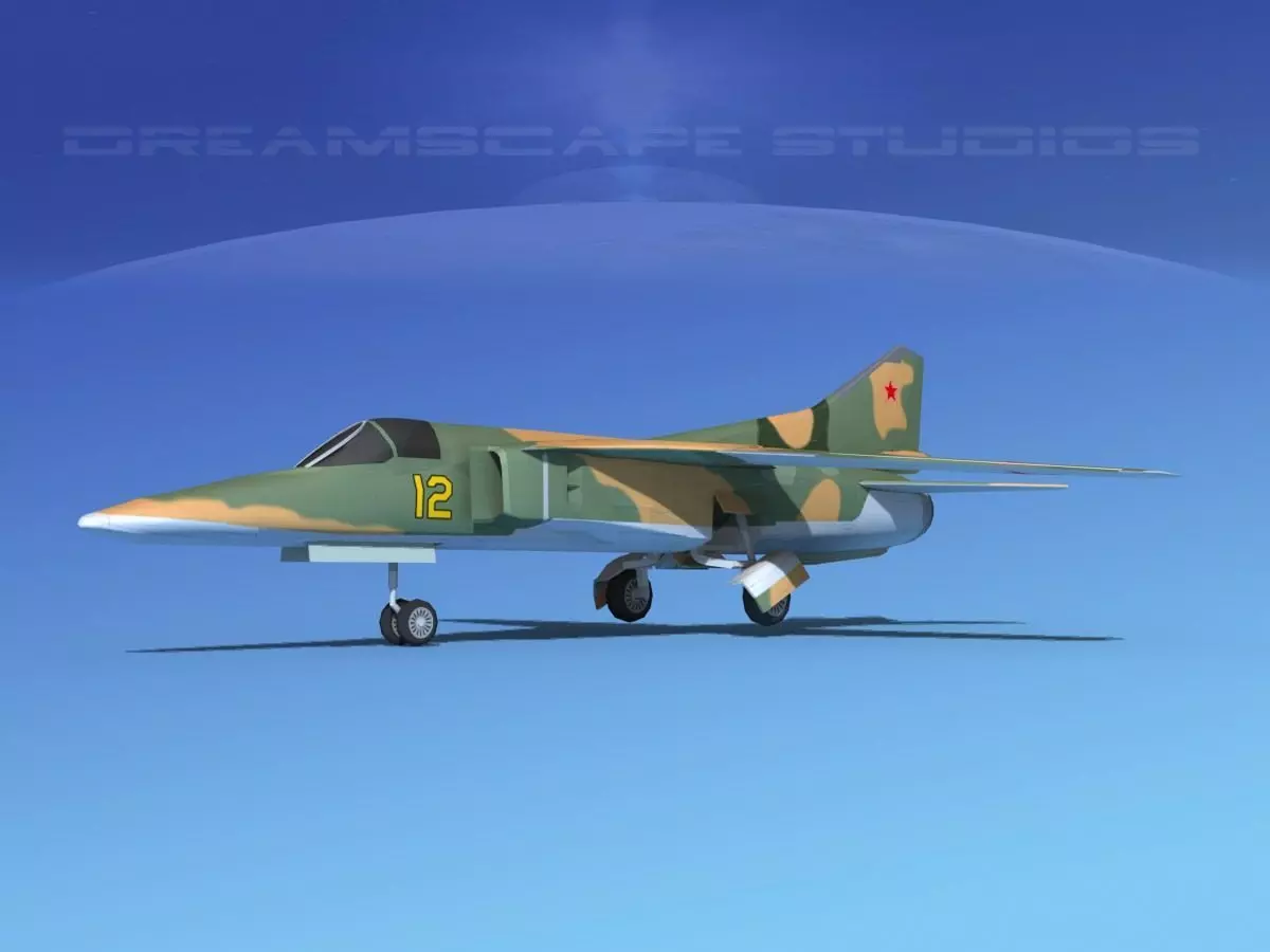This low poly MIG-27 3d model was built near to scale in general dimensional terms. It includes landing gear and wings are in the most forward sweep position. This model has animateable flaps, slats, stabilizers and rudder. Landing gear can be rotated hidden and landing gear bay doors closed. This model comes with the materials and textures and is available in a wide range of formats.