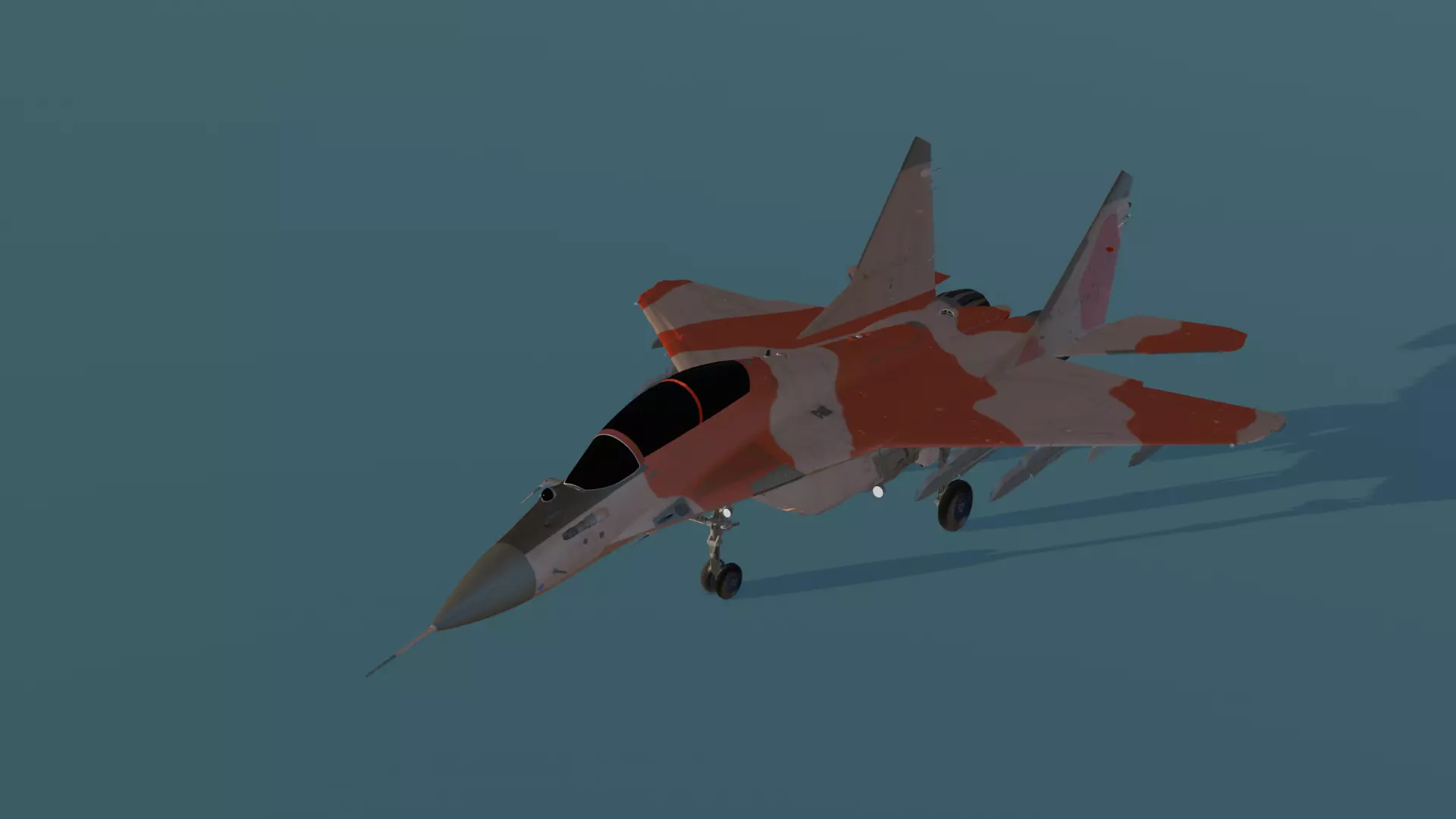 this is mig-35 two seat trainer version with heavily upgraded derivatives of the mig-35-fighter-jet plane the model comes with hi detail and ready for closeup render , please note that rigged model only available on native blend file but you can use it as reference for your own 3d application . the rig is simple and easy to use it also come full with missile ,