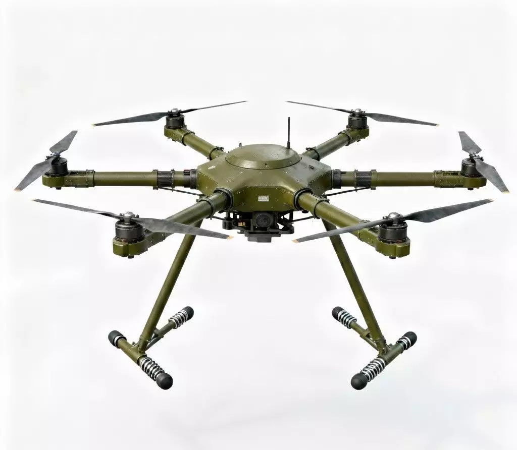 The Overall Concept This asset represents a heavy-duty, industrial-grade military hexacopter. Unlike recreational drones, this model focuses on a utilitarian-chic aesthetic, emphasizing raw power, durability, and tactical functionality for reconnaissance or payload delivery.