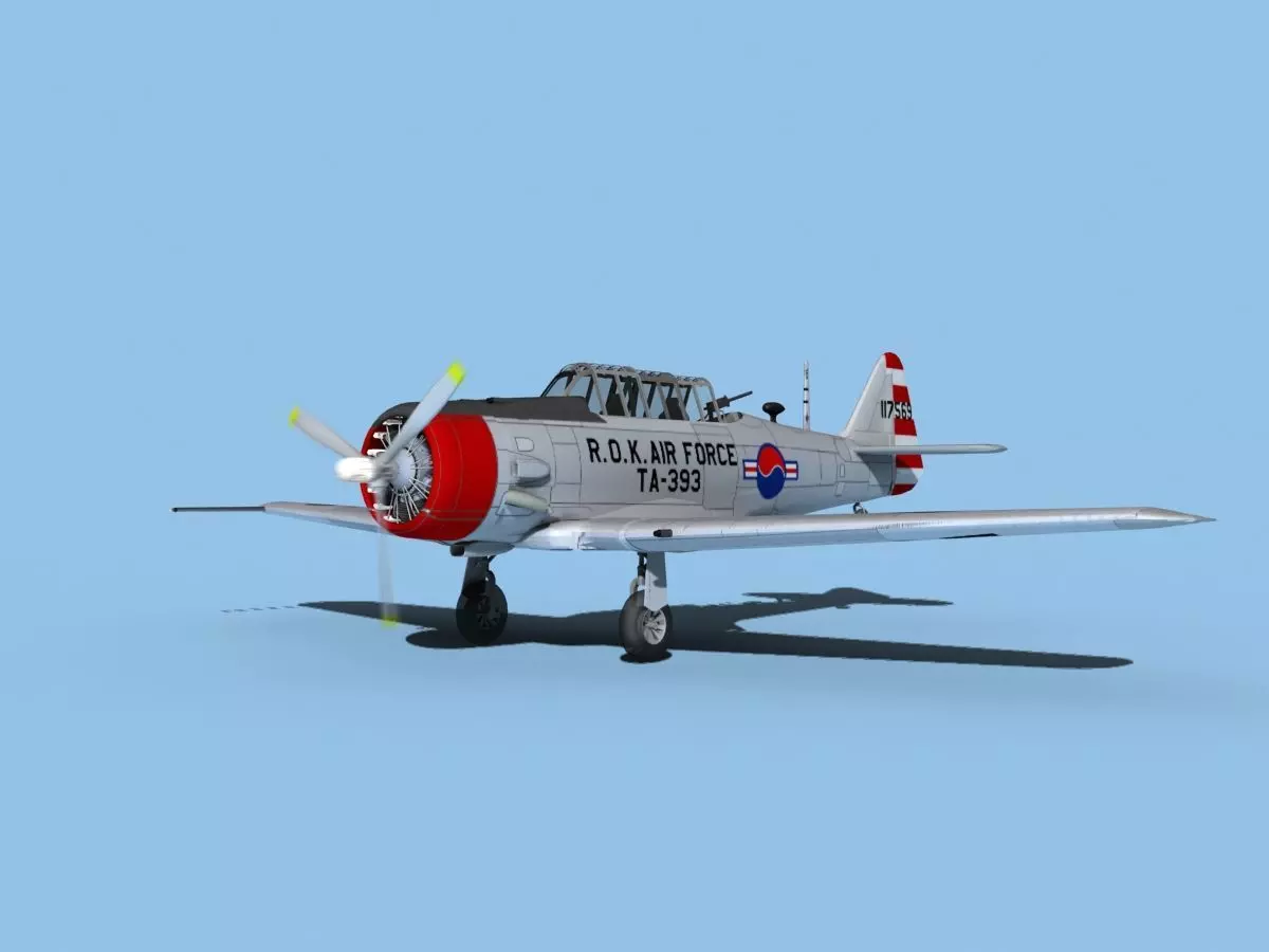 The AT-6 was an armed version of the T-6 Texan by North American Aircraft. It served as a trainer and ground support attack aircraft for the Army Air Forces, Navy, Marines and other allied forces during World War II. The armed version (AT-6) generally had two 30 caliber machine guns in the nose in front of the cockpit and one or two 30 caliber machine guns in the rearward facing gunner’s seat. These aircraft were sold as surplus to civilian pilots and were used as trainers, aerobatic airplanes for air shows and were restored. Now the AT-6 and T-6 are in the hands of private owners.