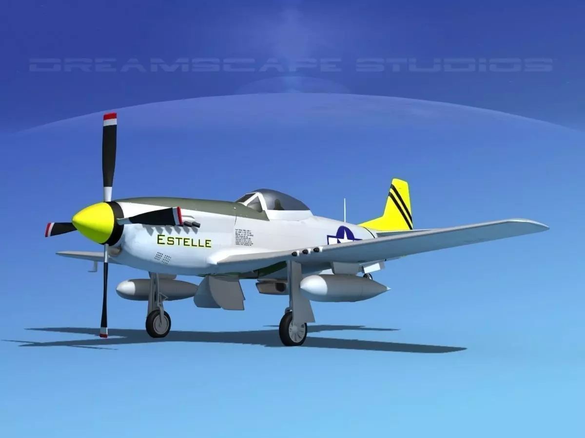 This Mustang model was originally developed for the Discovery Channel. It is built very near to scale and is fully textured. This model is detailed to include cockpit. The engine, cowlings, mounts, seat and radio equipment are modeled. Controls, instrument panels and many cranks and switches are modeled in the cockpit. Many features are animateable including ailerons, flaps, rudder, elevators, main and tail landing gear and doors, propeller, and the cockpit canopy opens.