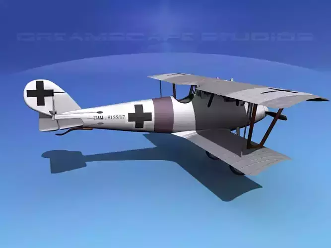 The exposed engine is very detailed and much of the engine is modeled in very much detail. Even valve springs and push rods are modeled in the top end of the exposed engine. The radiator and fuel tank are also modeled and located accurately in the top wing. The cockpit is detailed with controls and the instruments are included along with the wood structure of the cockpit area. The instrument panel is modeled as well as the independent compass mounted in the floor on the right side. The model includes animateable ailerons, elevators, rudder, propeller, controls, and some engine parts. The model is completely textured revealing an accurate representation of the wooden structure of the wings tail and stabilizers as well as control surfaces. It comes with all the materials and textures and is available in 10 different formats.