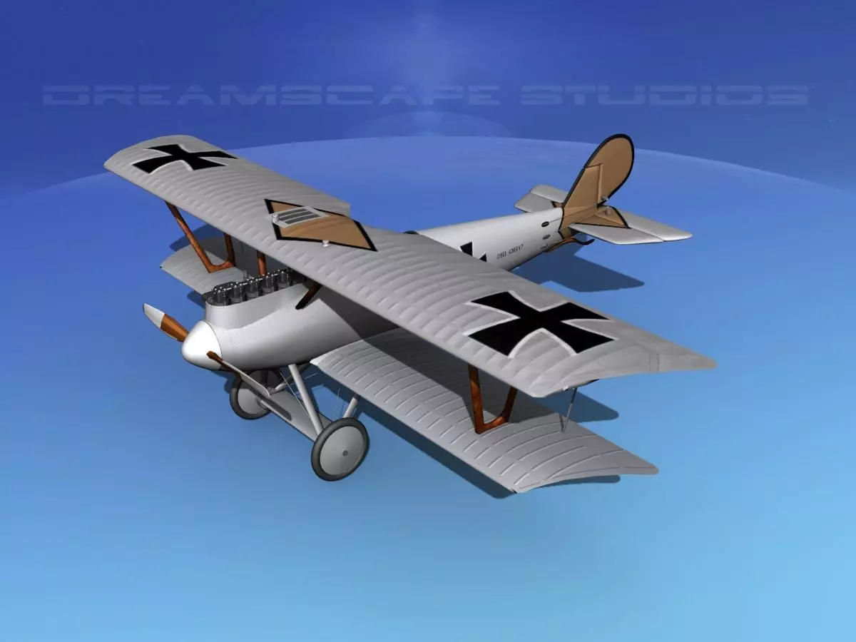 Accurate 3d model created near to scale (within 5%) according to the real reference. The exposed engine is very detailed and much of the engine is modeled in very much detail. Even valve springs and push rods are modeled in the top end of the exposed engine. The radiator and fuel tank are also modeled and located accurately in the top wing. The cockpit is detailed with controls and the instruments are included along with the wood structure of the cockpit area. The instrument panel is modeled as well as the independent compass mounted in the floor on the right side. The model includes animateable ailerons, elevators, rudder, propeller, controls, and some engine parts. The model is completely textured revealing an accurate representation of the wooden structure of the wings tail and stabilizers as well as control surfaces. Native format is 3ds Max version 13. Model was exported to a wide variety of formats. Other formats are exported in one resolution. This can be further subdivided. Exported formats (3ds, lwo and obj) are prepared well to work correctly with every standard modeling software. Compatibility level with other software’s may be limited.The model is built to be used in in-flight animations and video or simulation. It can also be used to populate an airport scene.Previews were rendered using 3dsmax standard scanline.Model unit is variable depending on the model and references. The Pfalz DIII was developed in late 1916 and produced for the Imperial German Air Service between 1917 and the wars end.