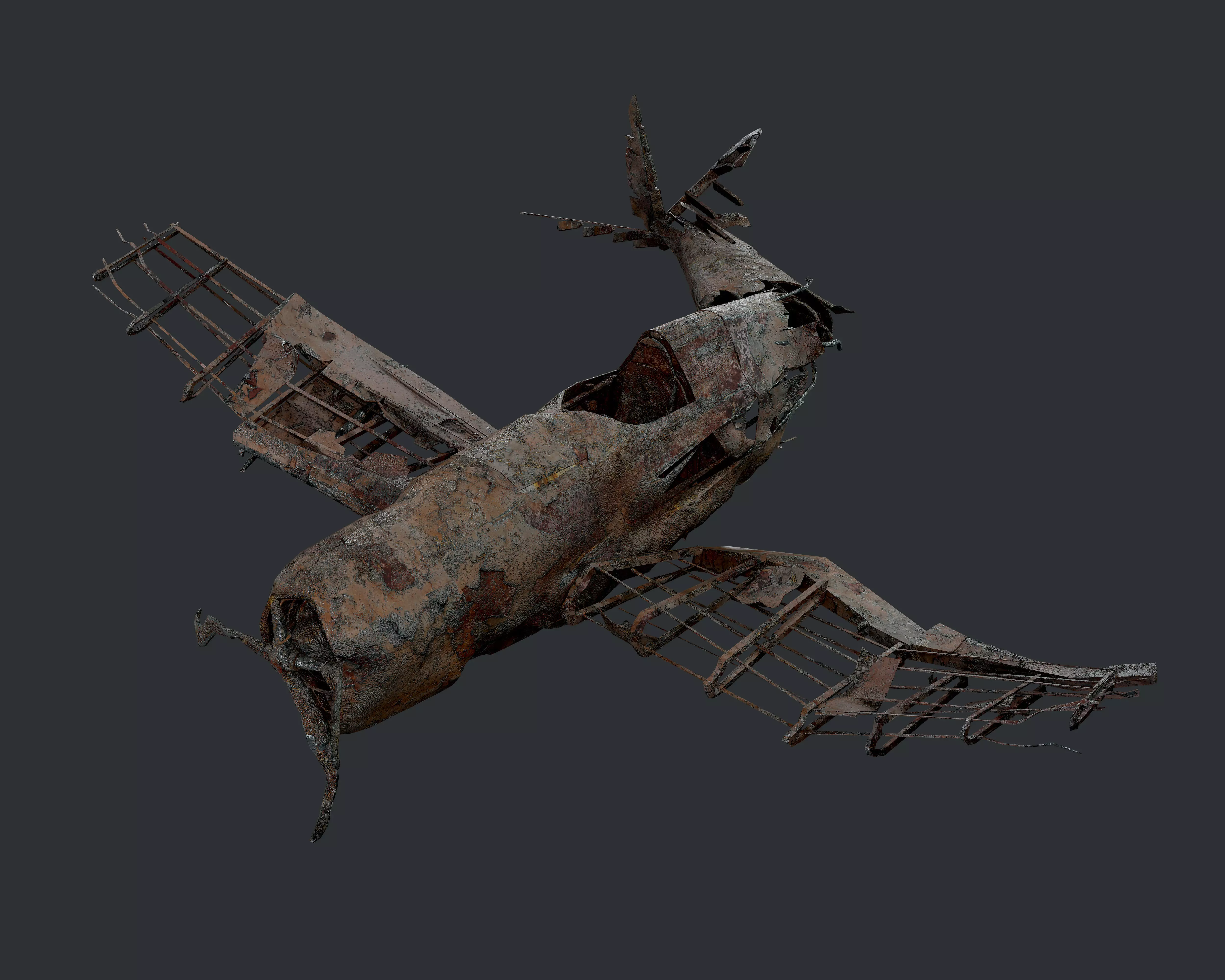 Model of a wrecked plane, unwrapped with PBR textures. OBJ files and FBX files. Ready for use in any 3D software or game engine. Unwrapped: Non- Overlapping.