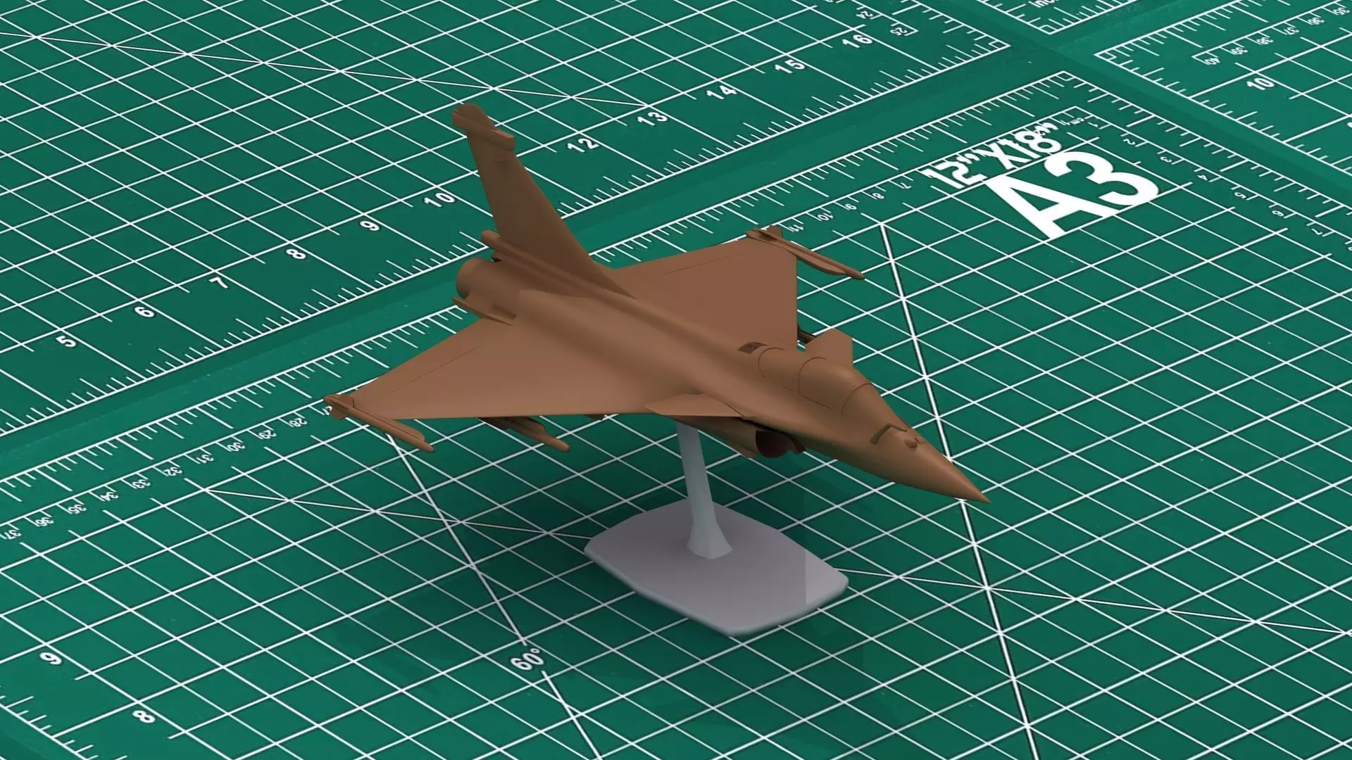 Rafale C 3D Print model. Item is shown painted in some illustrations. This is a 3D model print file supplied unpainted, not a physical product. File comes with optional stand.