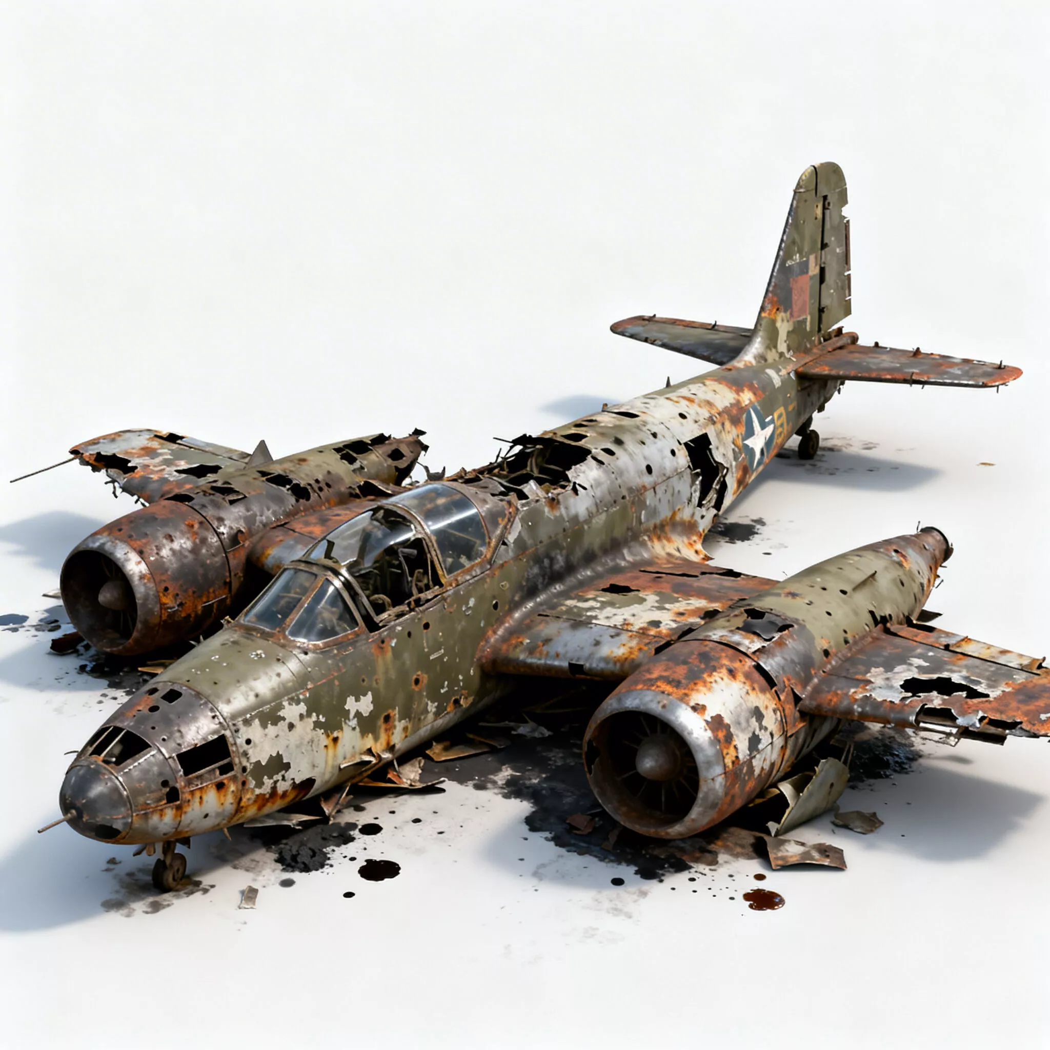 Bring a powerful sense of historical tragedy, intense conflict, and rugged realism to your project with this highly detailed Realistic Wrecked Twin-Engine Military Jet 3D Model. Designed with a heavily battle-scarred aesthetic and a haunting presence, this asset captures the devastating aftermath of a downed vintage jet aircraft.