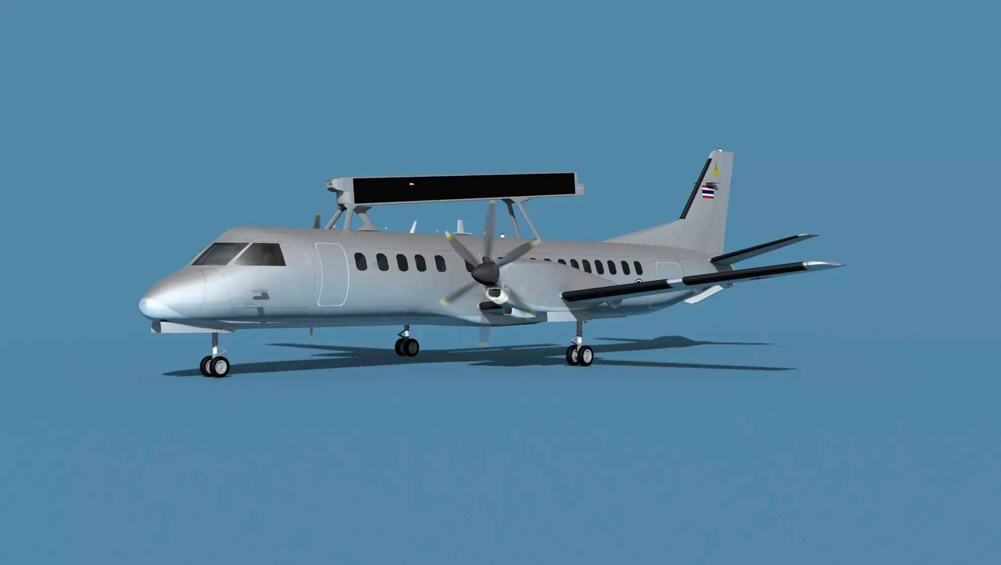 The SAAB SA2000 Erieye AEWAC airborne early warning and control aircraft is a military variant of the standard SAAB SA2000 regional airliner equipped with a spine mounted Erieye PS-890 side looking radar. It is used to watch over an airspace for income threats and or to control ground and air assets for military operations.