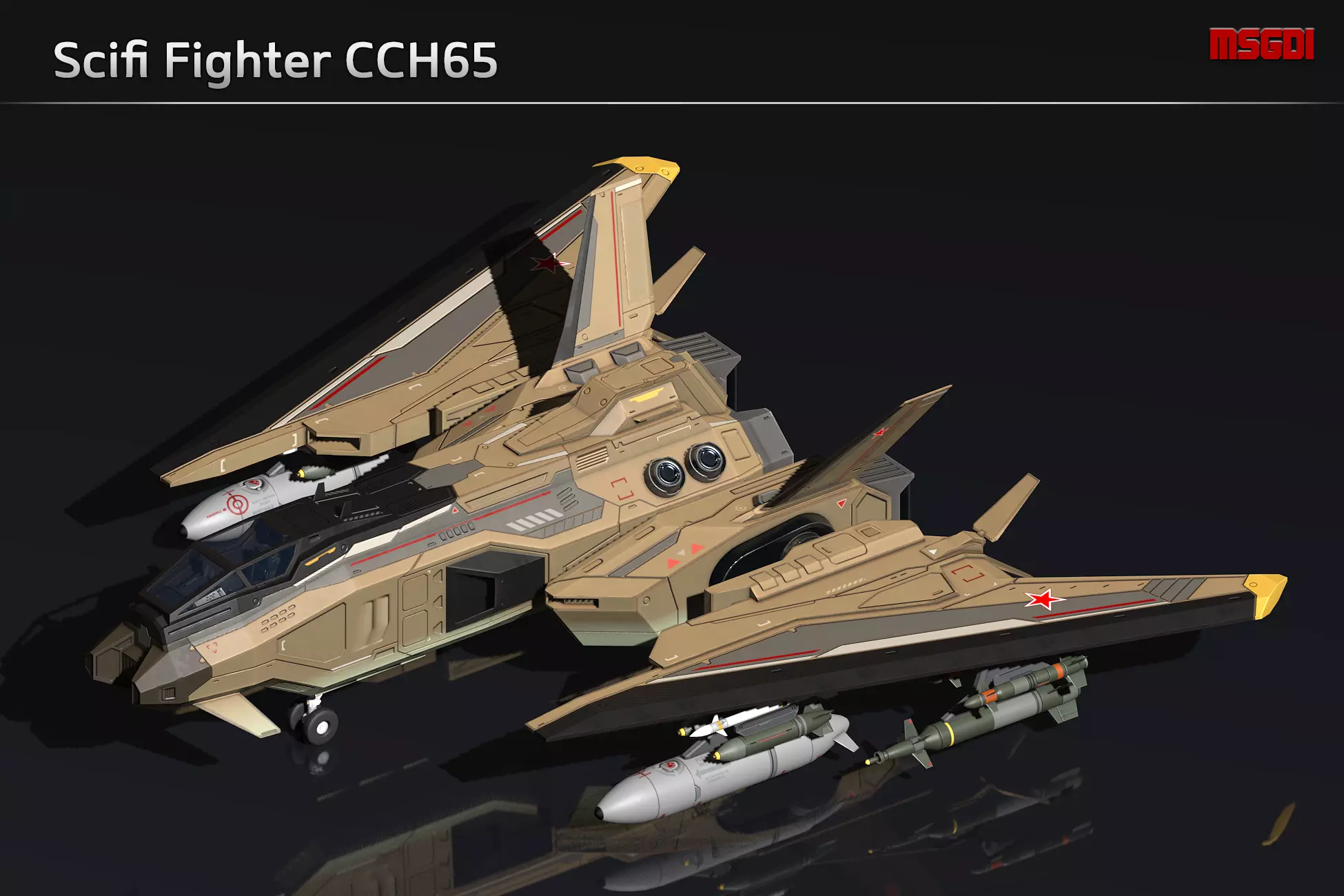 This pack contains a scifi jet fighter with modular weapons and decals. It can be used in a scifi or space themed game.