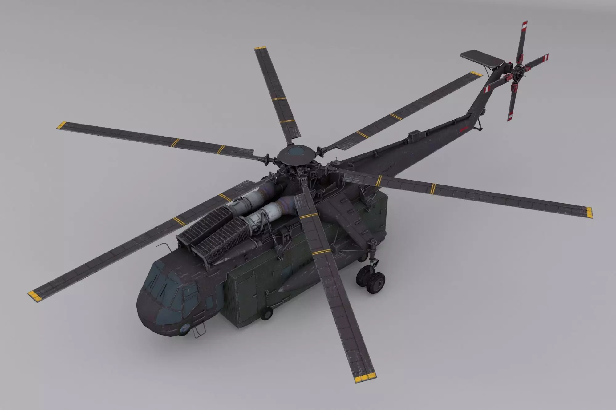 This is a highly detailed and realistic 3D model of the Sikorsky CH-54 Tarhe, a heavy-lift cargo helicopter used by the United States Army. Ideal for military simulations, flight animations, game development, and realistic visualizations.