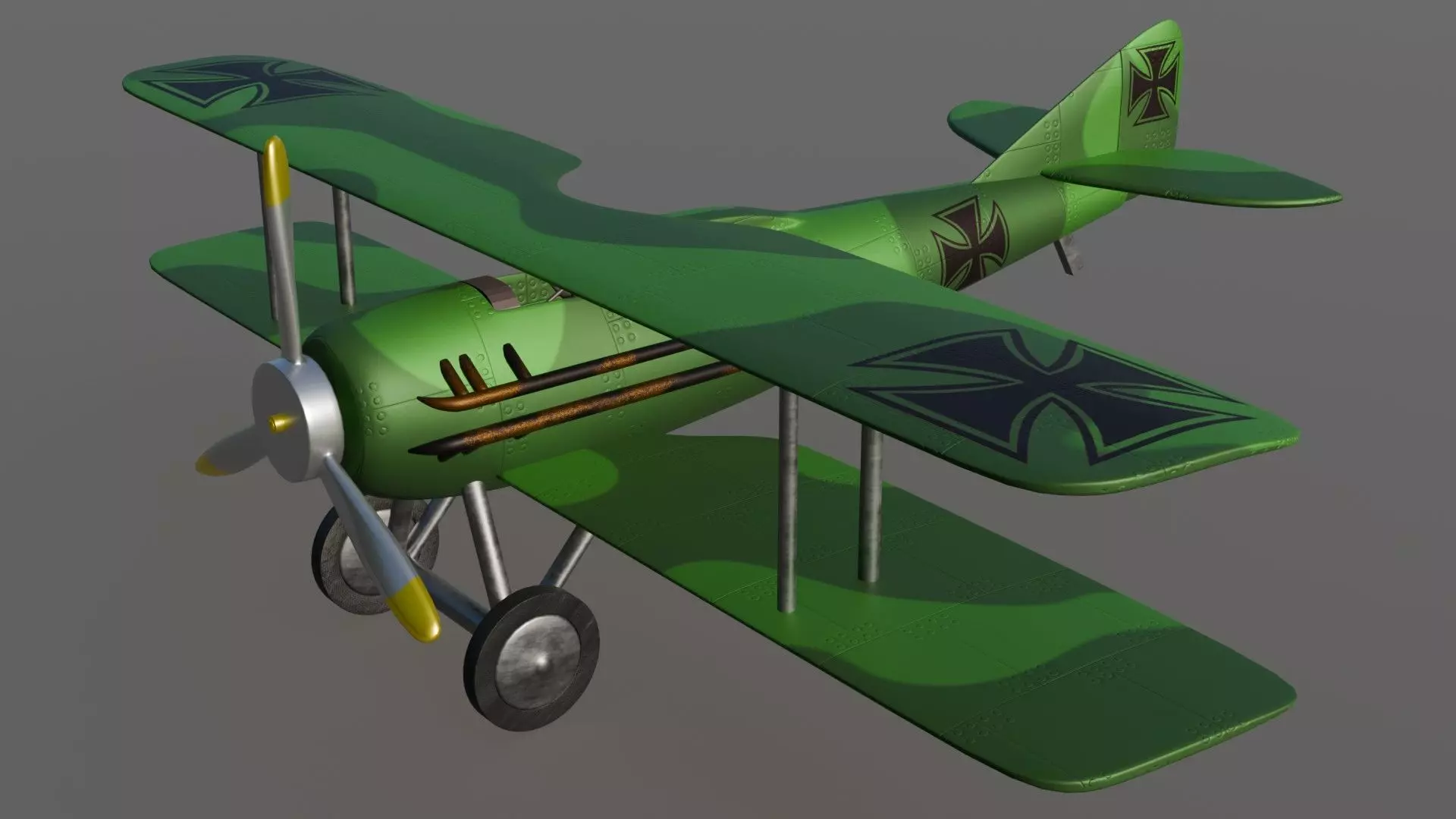 3D model of a WWI fighter jet. Suitable for games, animations, renderings.Suitable for historical, military or aviation scenes in a stylized graphic style.Two textures, the first with symbols, the second without.